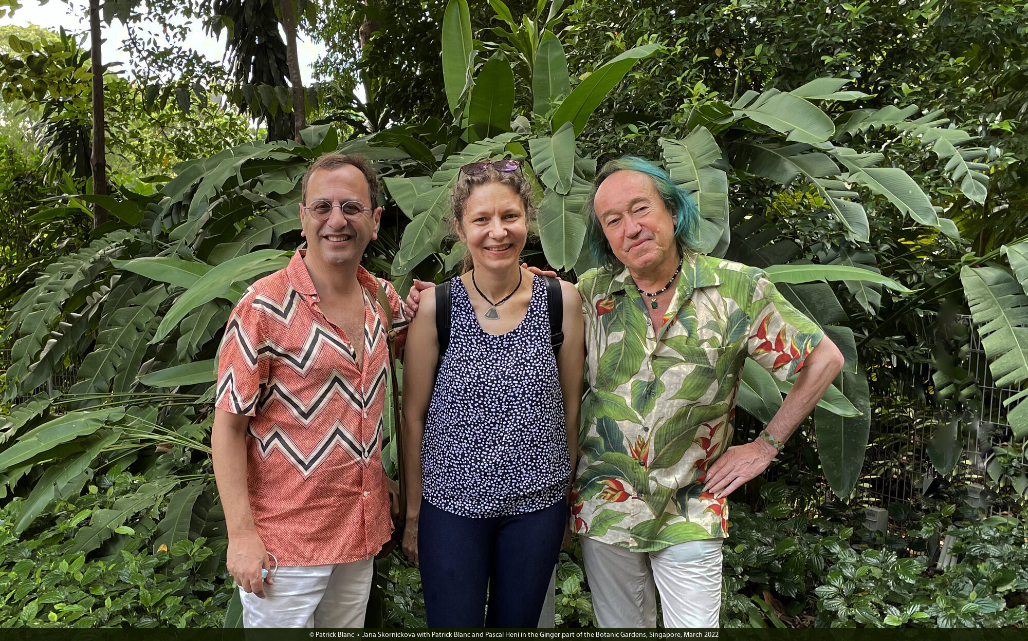 Jana Skornickova with Patrick Blanc and Pascal Heni in the Ginger part of the Botanic Gardens, Singapore, March 2022