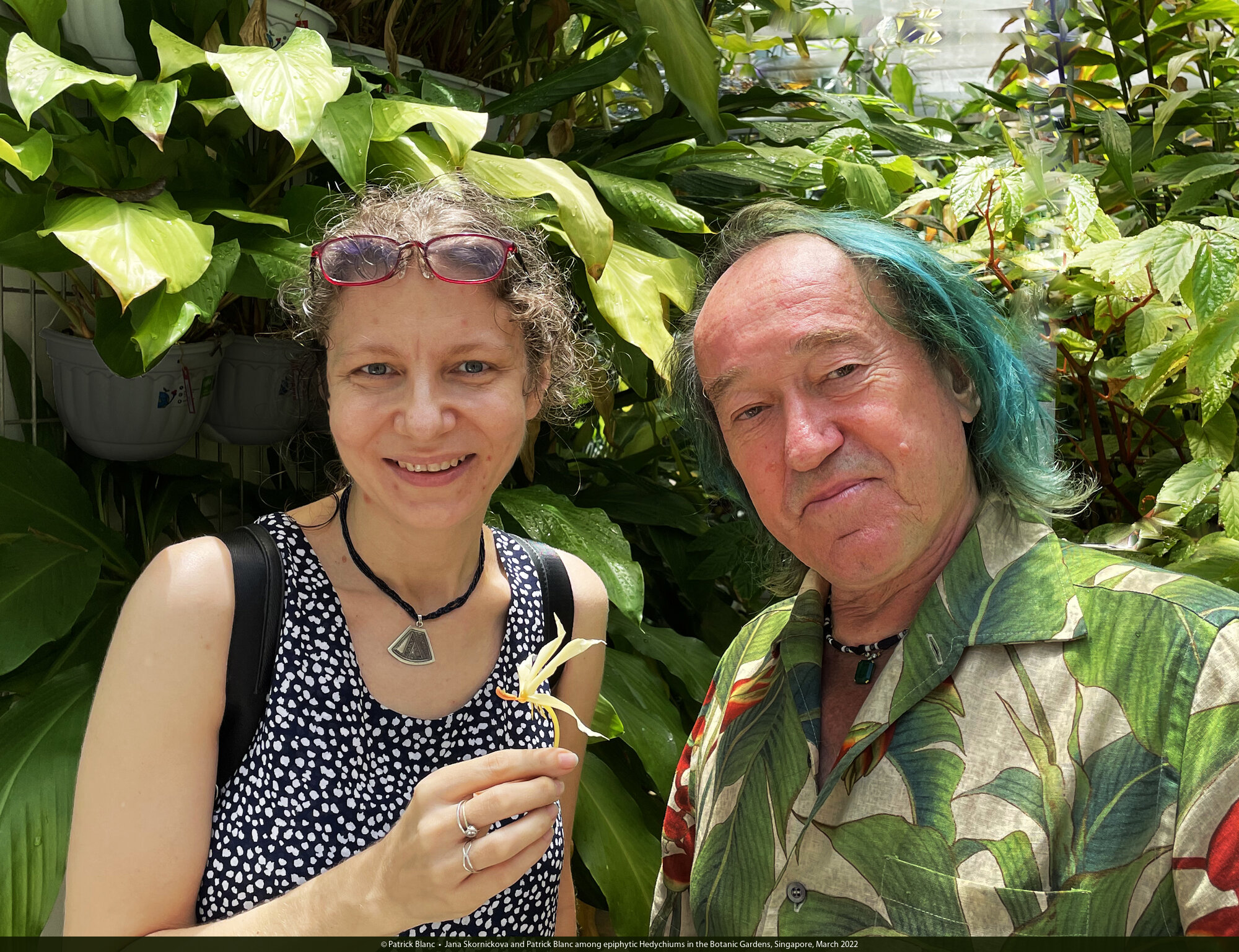 Jana Skornickova and Patrick Blanc among epiphytic Hedychiums in the Botanic Gardens, Singapore, March 2022
