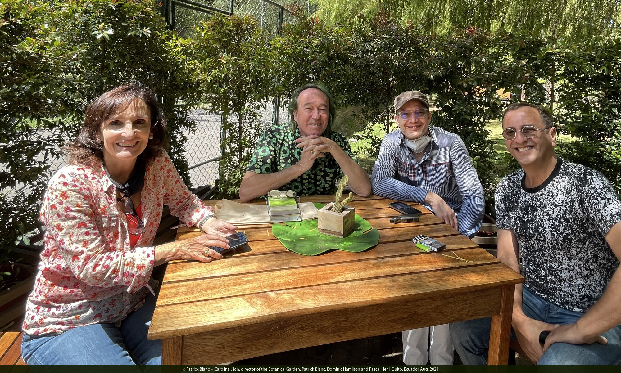 Carolina Jijon, director of the Botanical Garden, Patrick Blanc, Dominic Hamilton and Pascal Heni, Quito, Ecuador Aug. 2021