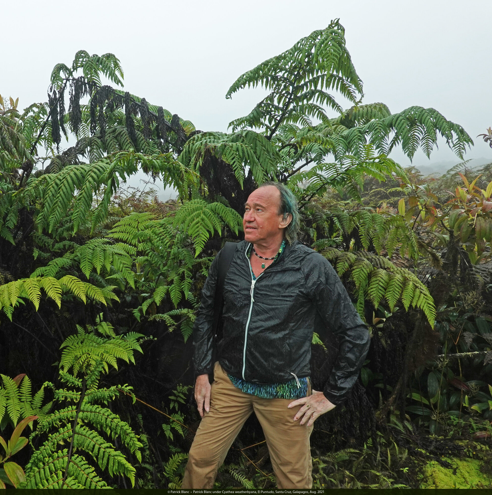 Patrick Blanc in Miconia robinsoniana and fern altitude shrubland, El Puntudo, Santa Cruz, Galapagos, Aug. 2021