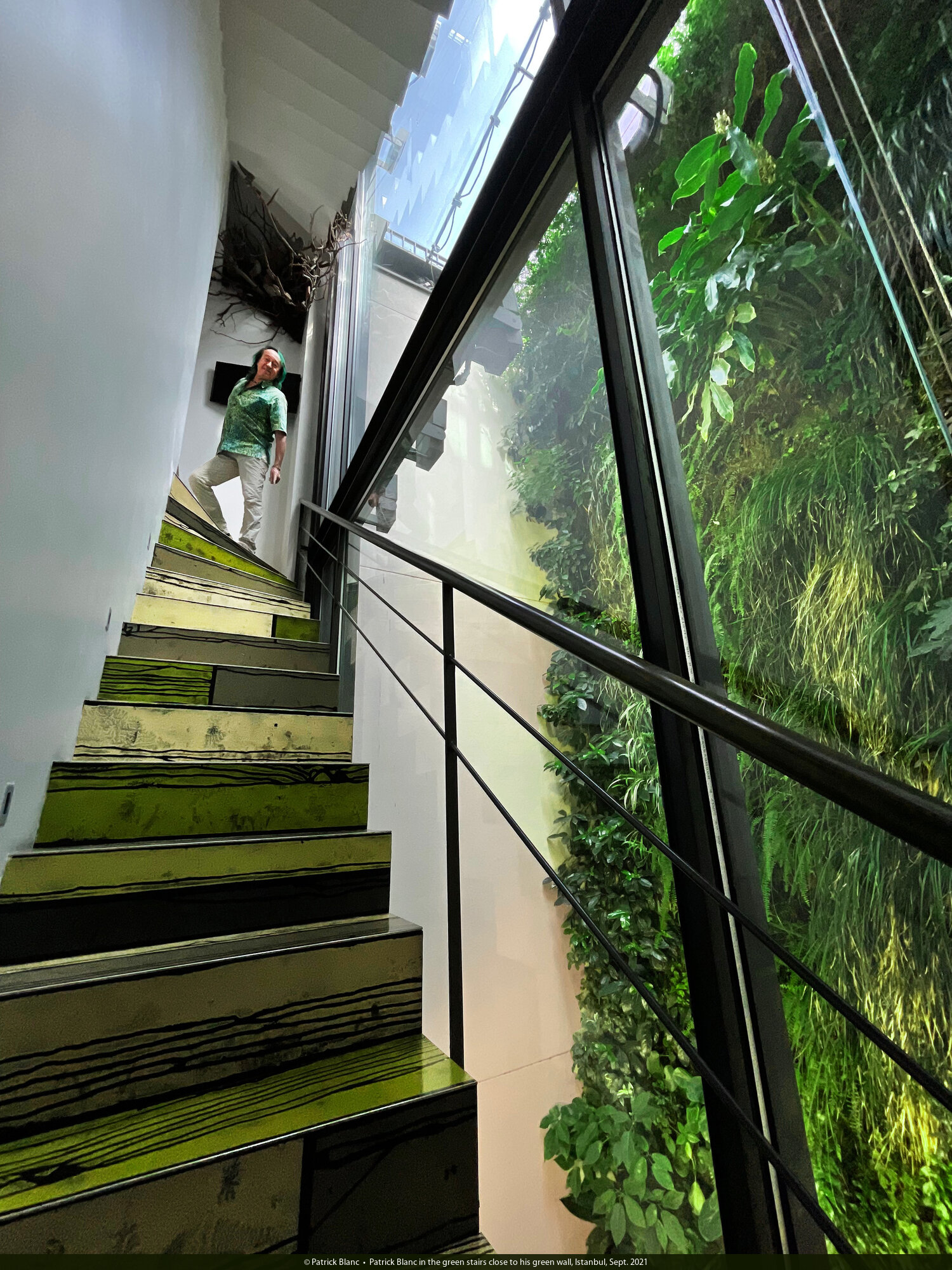 Patrick Blanc in the green stairs close to his green wall, Istanbul, Sept. 2021