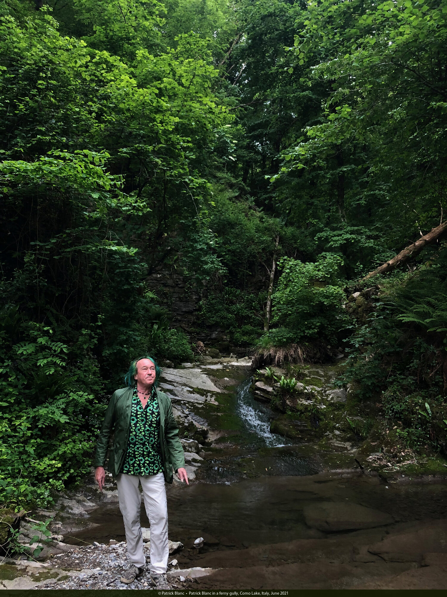 Patrick Blanc in a ferny gully, Como Lake, Italy, June 2021