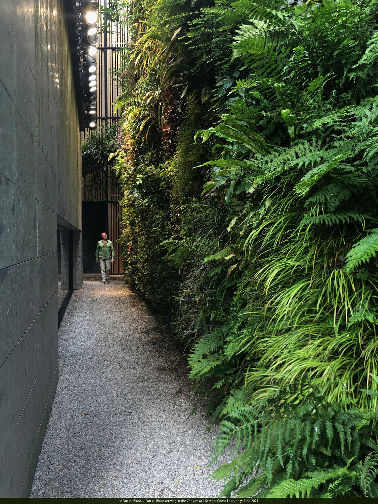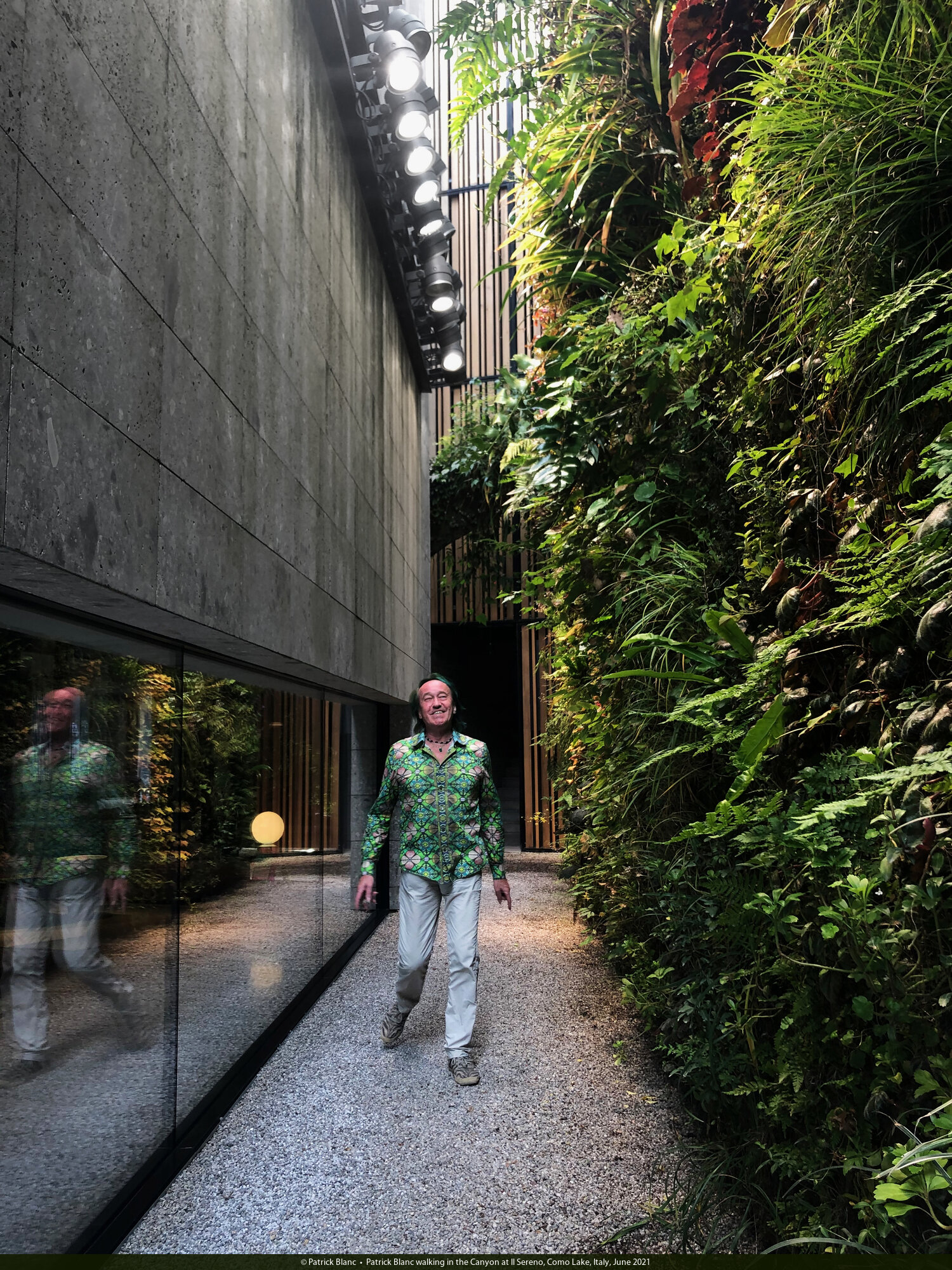 Patrick Blanc walking in the Canyon at Il Sereno, Como Lake, Italy, June 2021