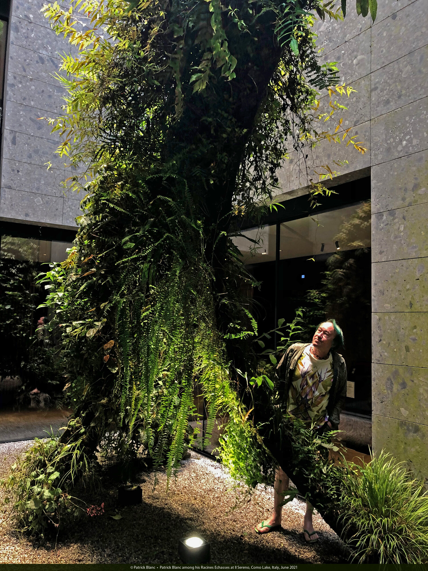 Patrick Blanc among his Racines Echasses at Il Sereno, Como Lake, Italy, June 2021