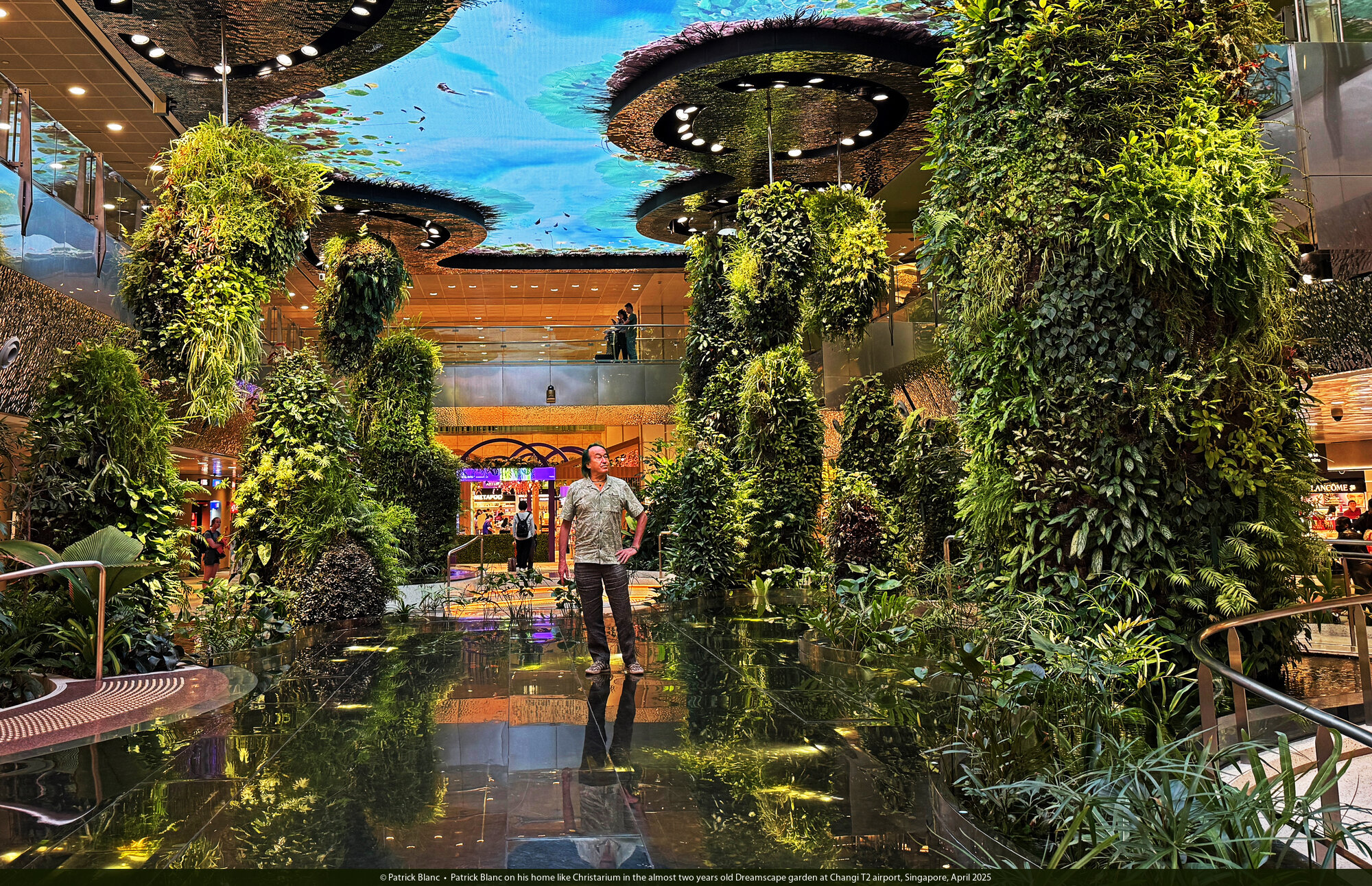 Patrick Blanc on his home like Christarium in the almost two years old Dreamscape garden at Changi T2 airport, Singapore, April 2025