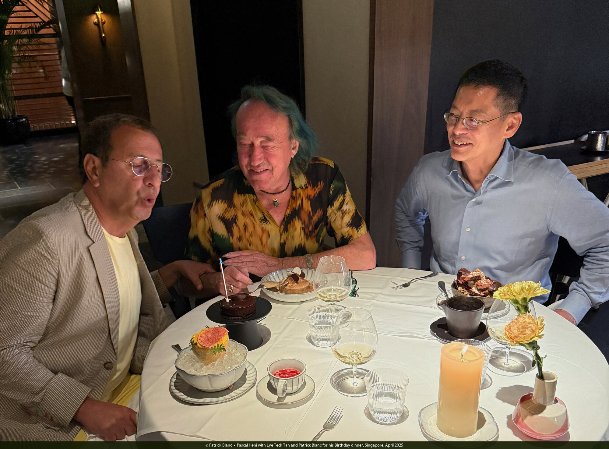 Pascal Héni with Lye Teck Tan and Patrick Blanc for his Birthday dinner, Singapore, April 2025