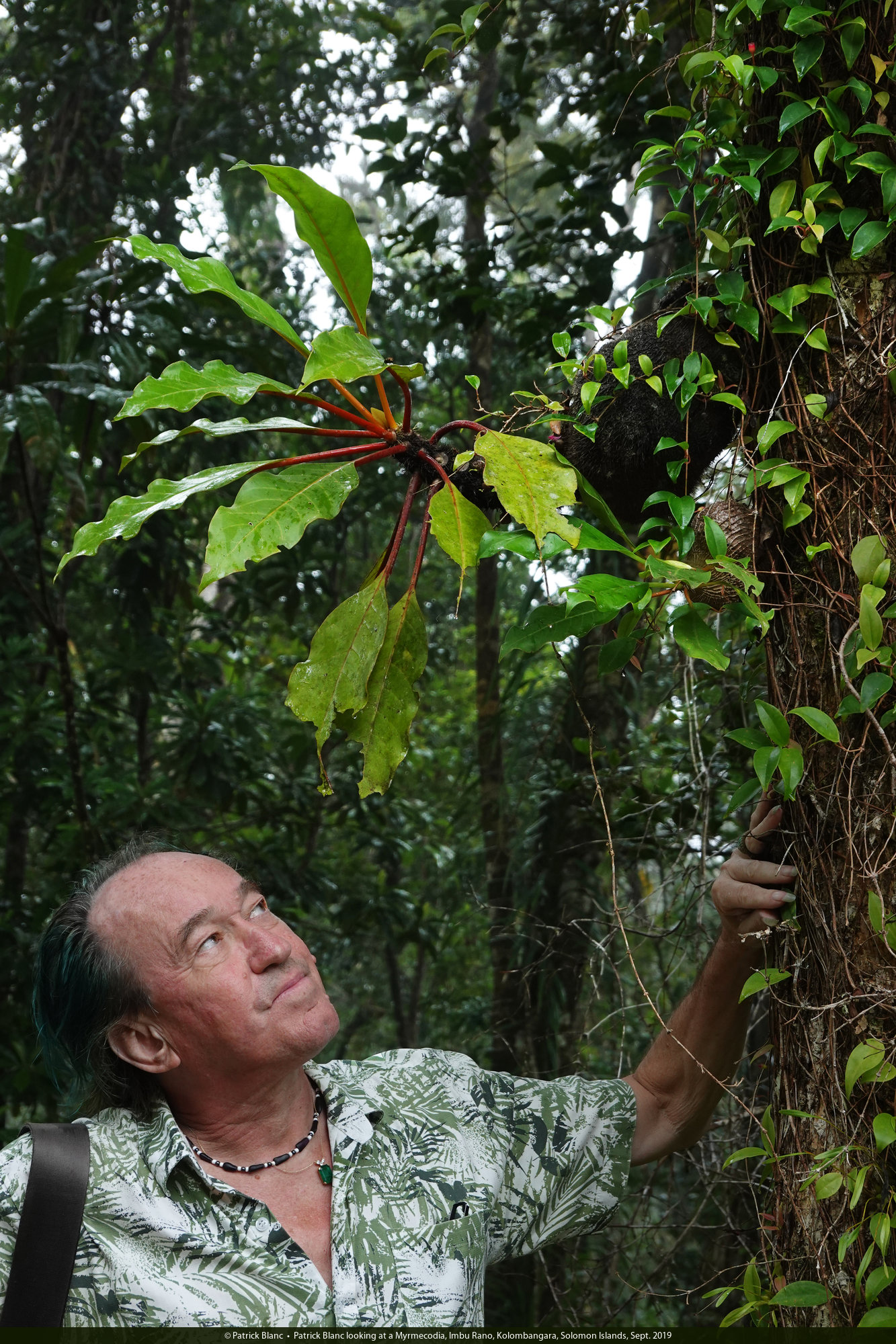Patrick Blanc looking at a Myrmecodia, Imbu Rano, Kolombangara, Solomon Islands, Sept. 2019