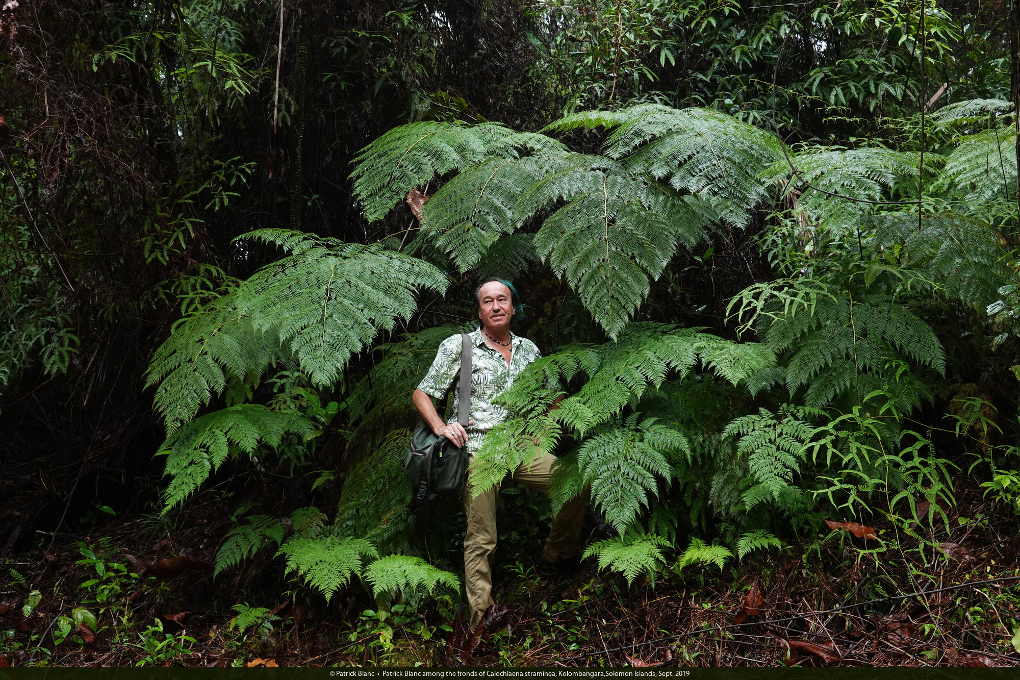 Patrick Blanc among the petioles of the huge fern Angiopteris microura, Imbu Rano, Kolombangara, Solomon Islands, Sept. 2019