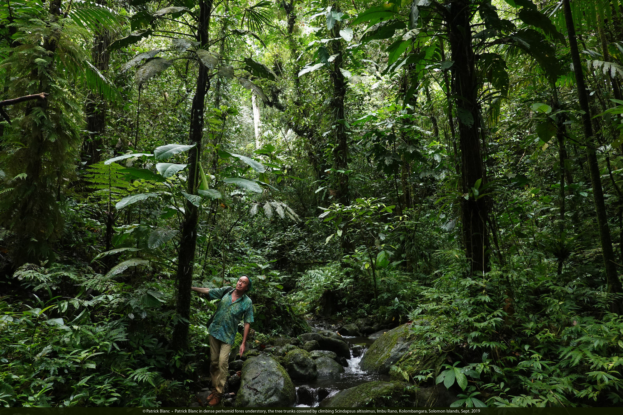 Patrick Blanc walking in forest understory, Imbu Rano, Kolombangara, Solomon Islands, Sept. 2019