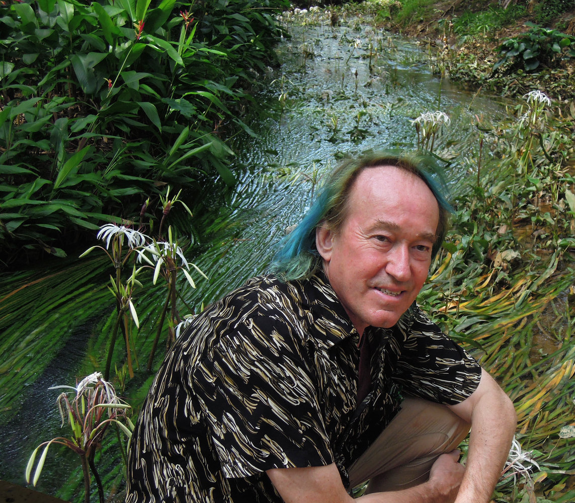 Patrick Blanc above a flowering population of the rheophytic Crinum thaianum, Kuraburi, Thailand, Oct 2014