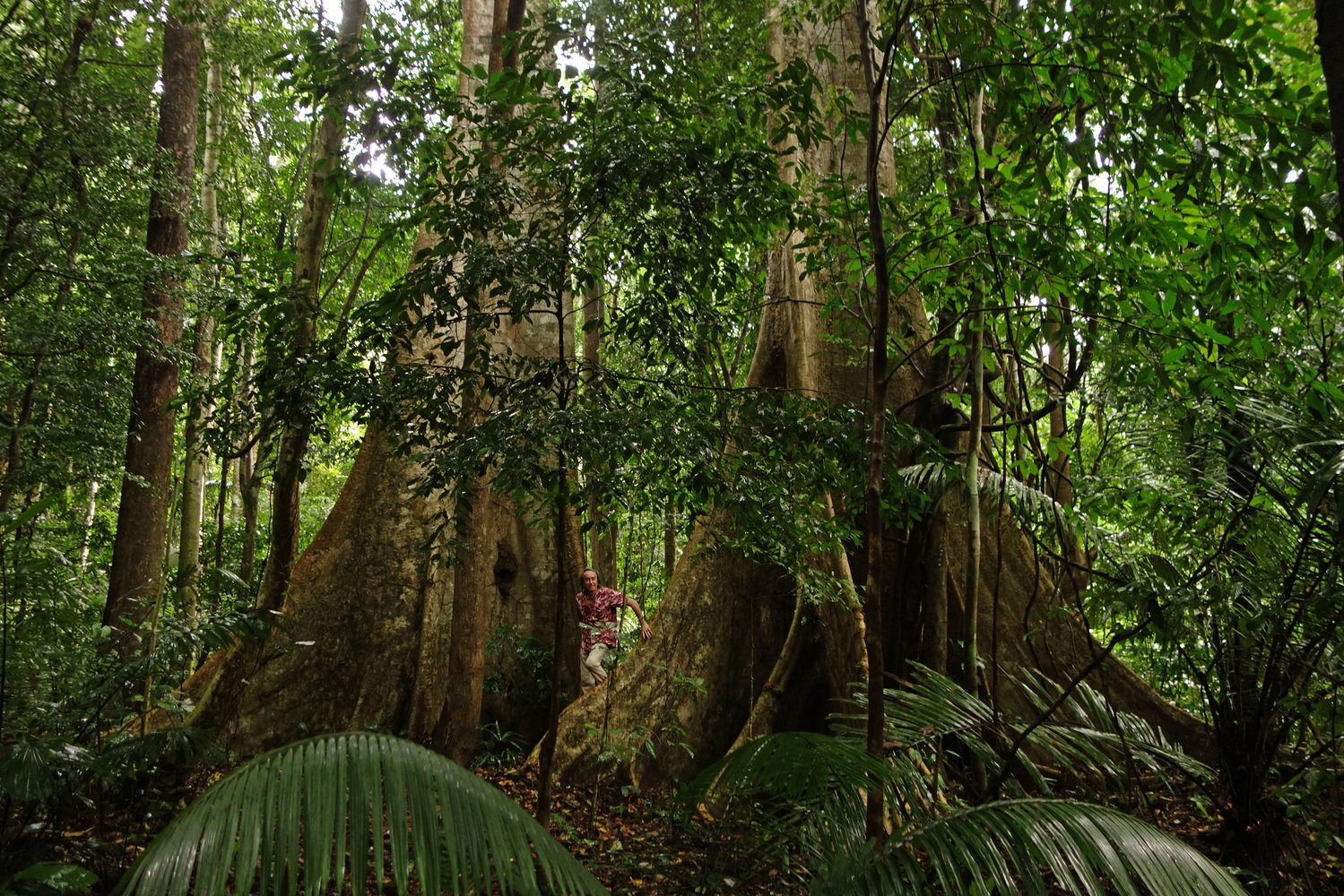 Patrick Blanc between two giant Tetrameles nudiflora, Khao Panombencha NP, Thailand, Oct 2014