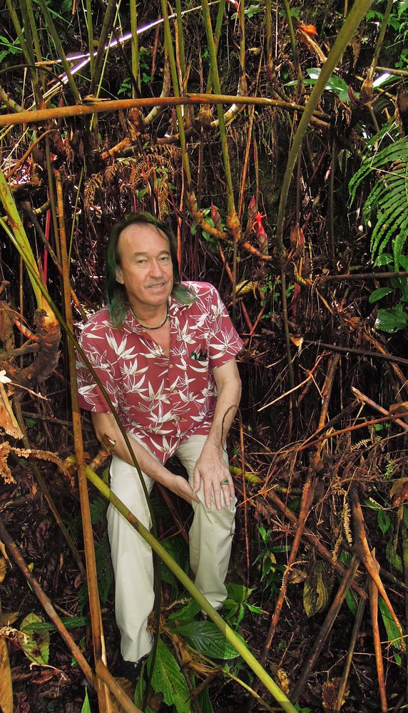 Patrick Blanc under heavy rain in a Boesenbergia population, Tioman, Malaysia, April 2015