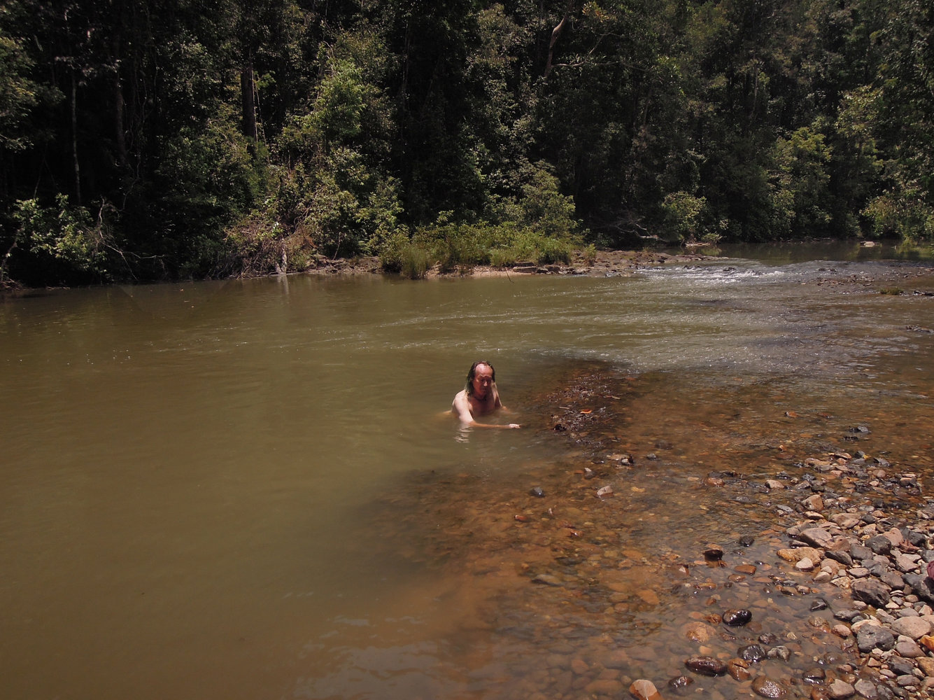 Patrick Blanc swimming close to a Cryptocoryne nurii population in a swift running river, Endau Rompin, Malaysia, April 2015