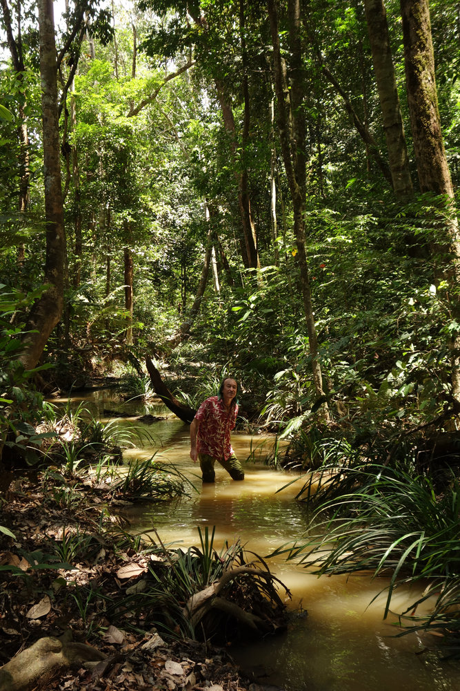 Patrick Blanc walking in a primary forest stream, Johore, Malaysia, April 2015