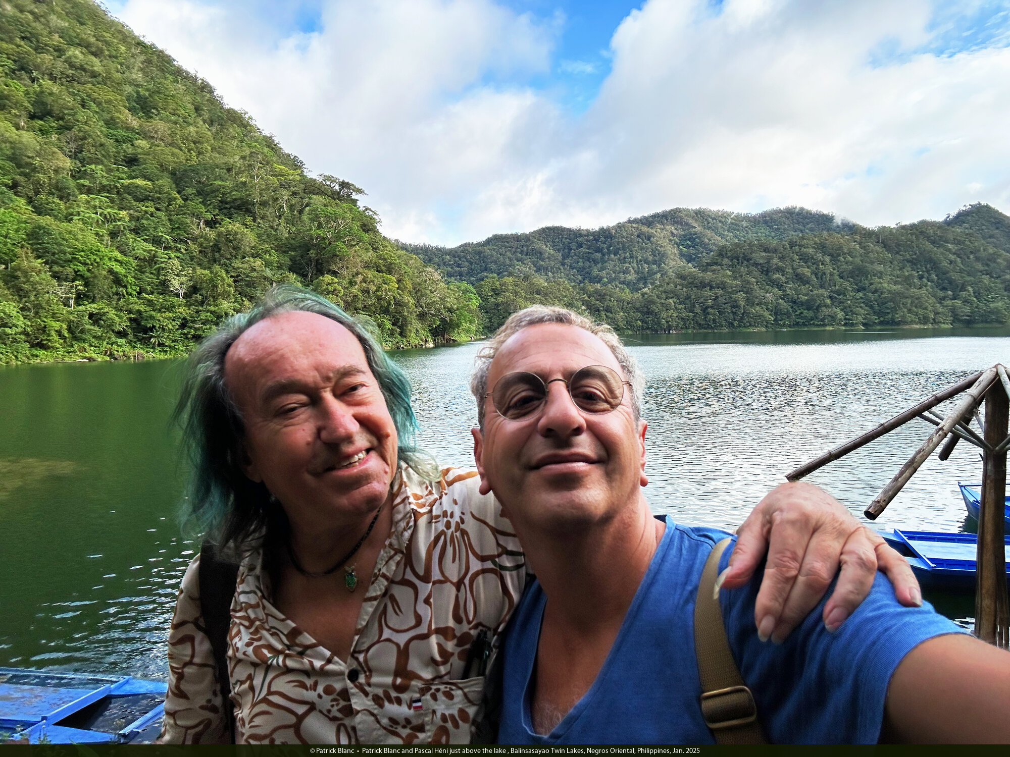 Patrick Blanc and Pascal Héni just above the lake , Balinsasayao Twin Lakes, Negros Oriental, Philippines, Jan. 2025