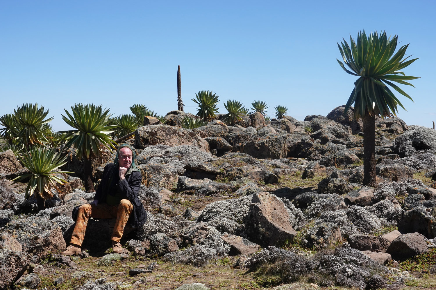 • Patrick Blanc among the leaves of Dracaena aubryana, an african alien species, Sungei Buloh Wetlands, Singapore, March 2019