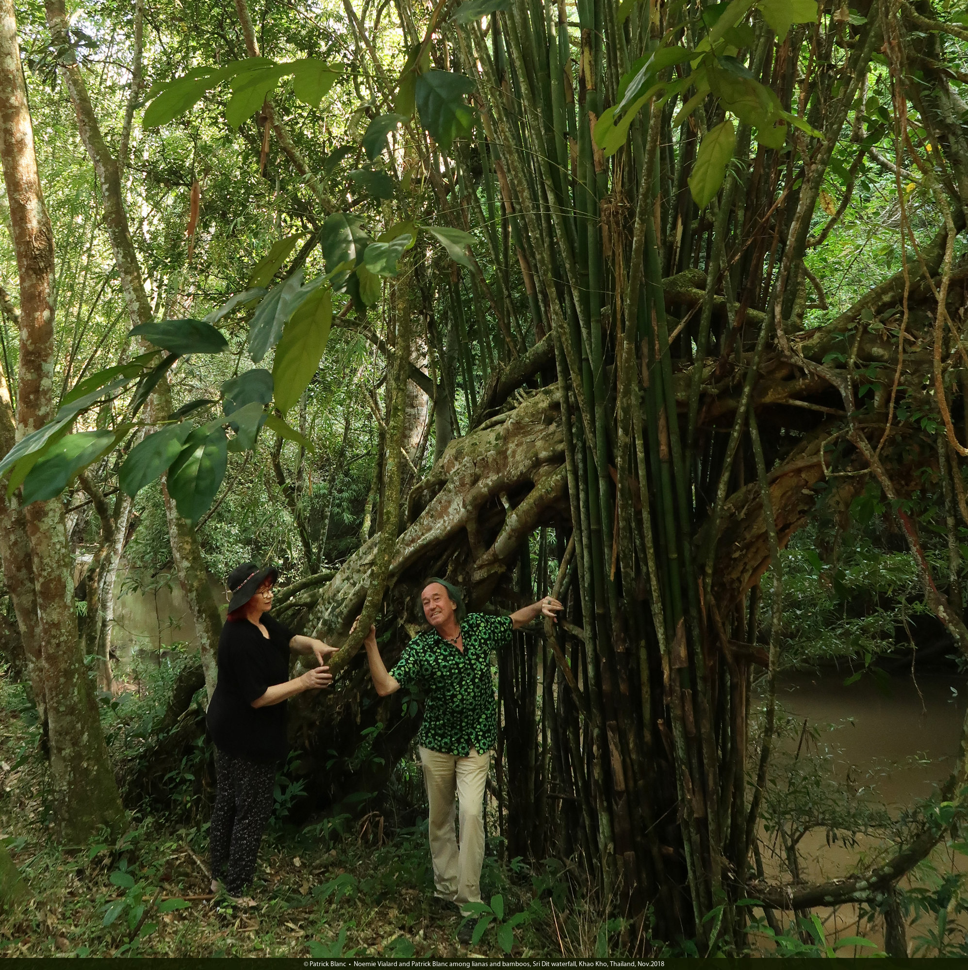 Noemie Vialard and Patrick Blanc among lianas and bamboos, Sri Dit waterfall, Khao Kho, Thailand, Nov.2018