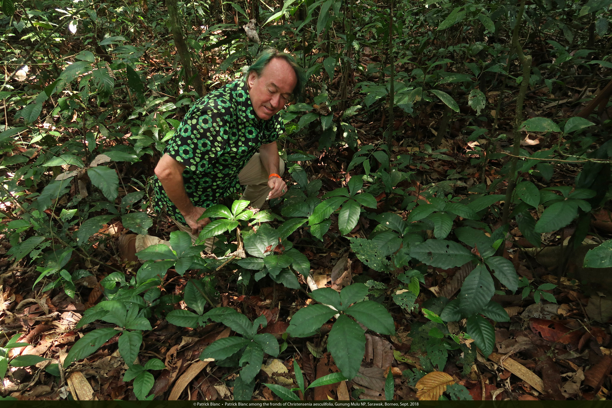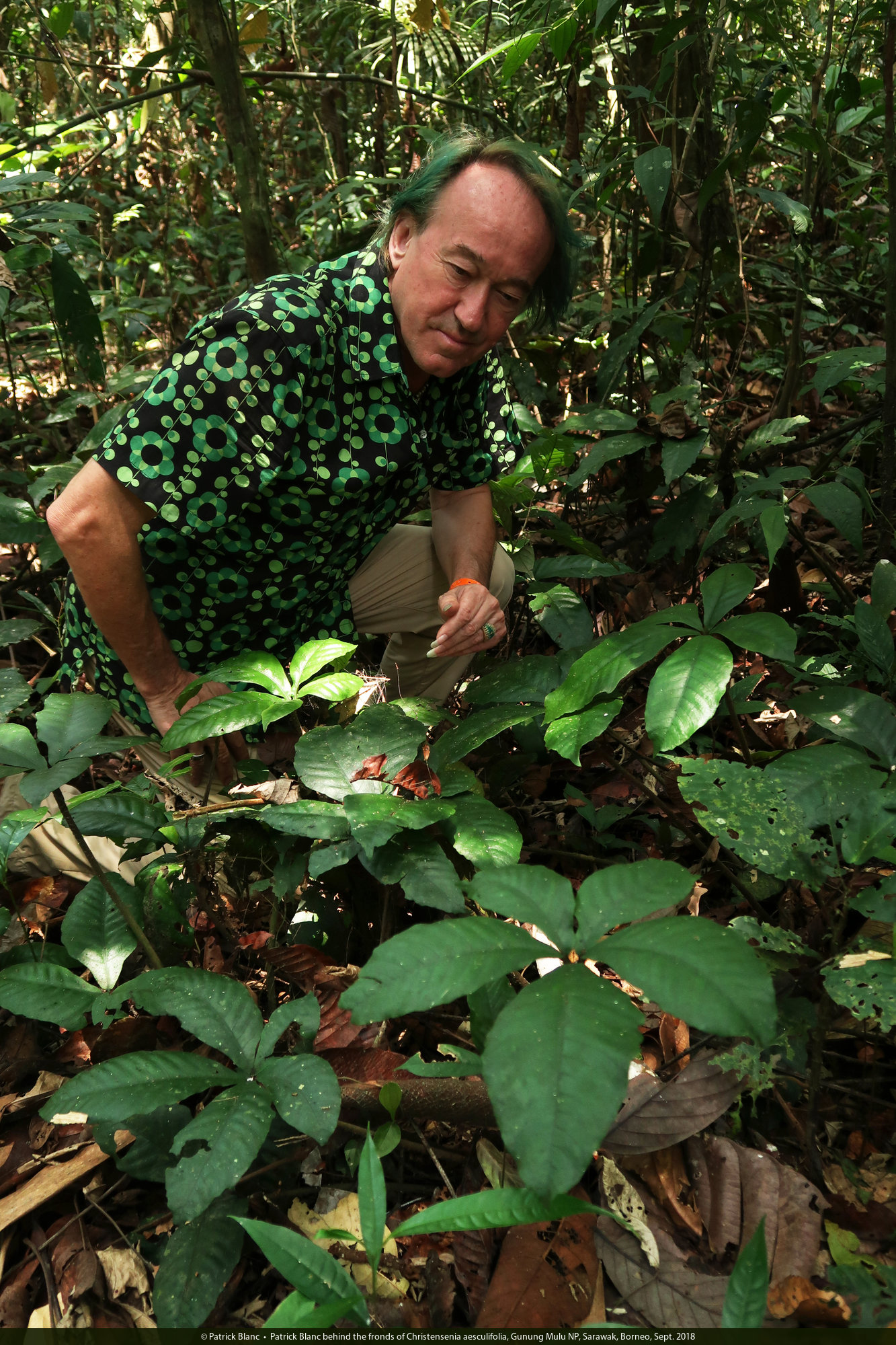 Patrick Blanc among the fronds of Christensenia aesculifolia, Gunung Mulu NP, Sarawak, Borneo, Sept. 2018