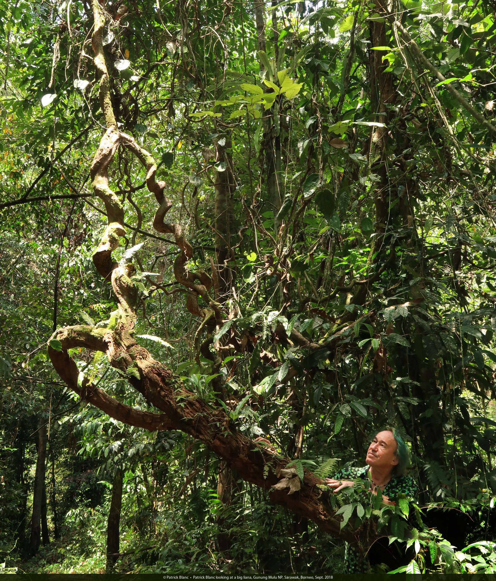 Patrick Blanc looking at a big liana, Gunung Mulu NP, Sarawak, Borneo, Sept. 2018