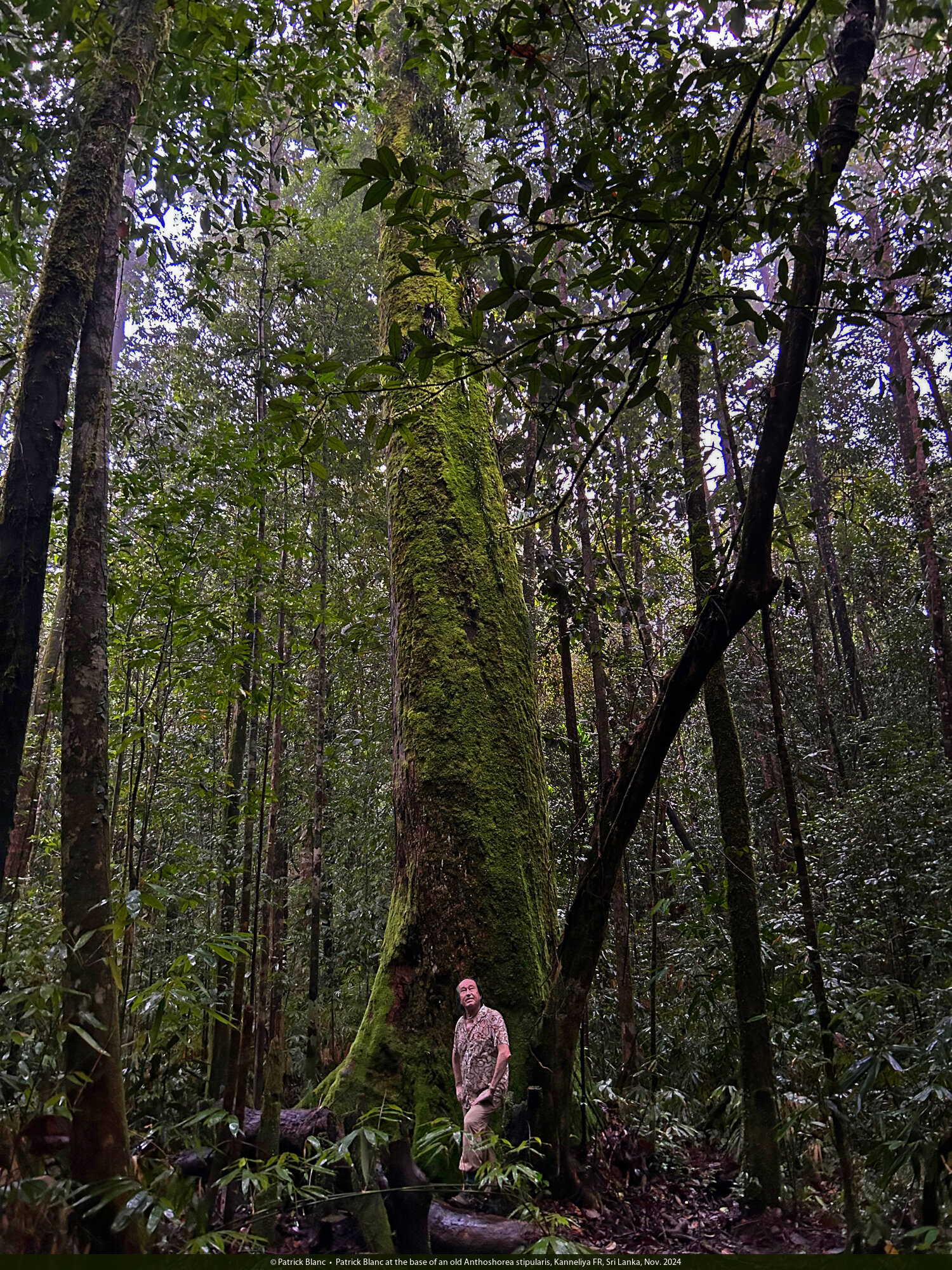 Patrick Blanc at the base of an old Anthoshorea stipularis, Kanneliya FR, Sri Lanka, Nov. 2024