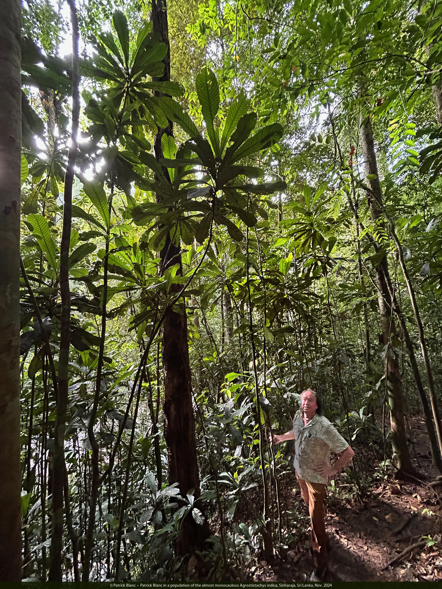 Patrick Blanc in a population of the almost monocaulous Agrostistachys indica, Sinharaja, Sri Lanka, Nov. 2024