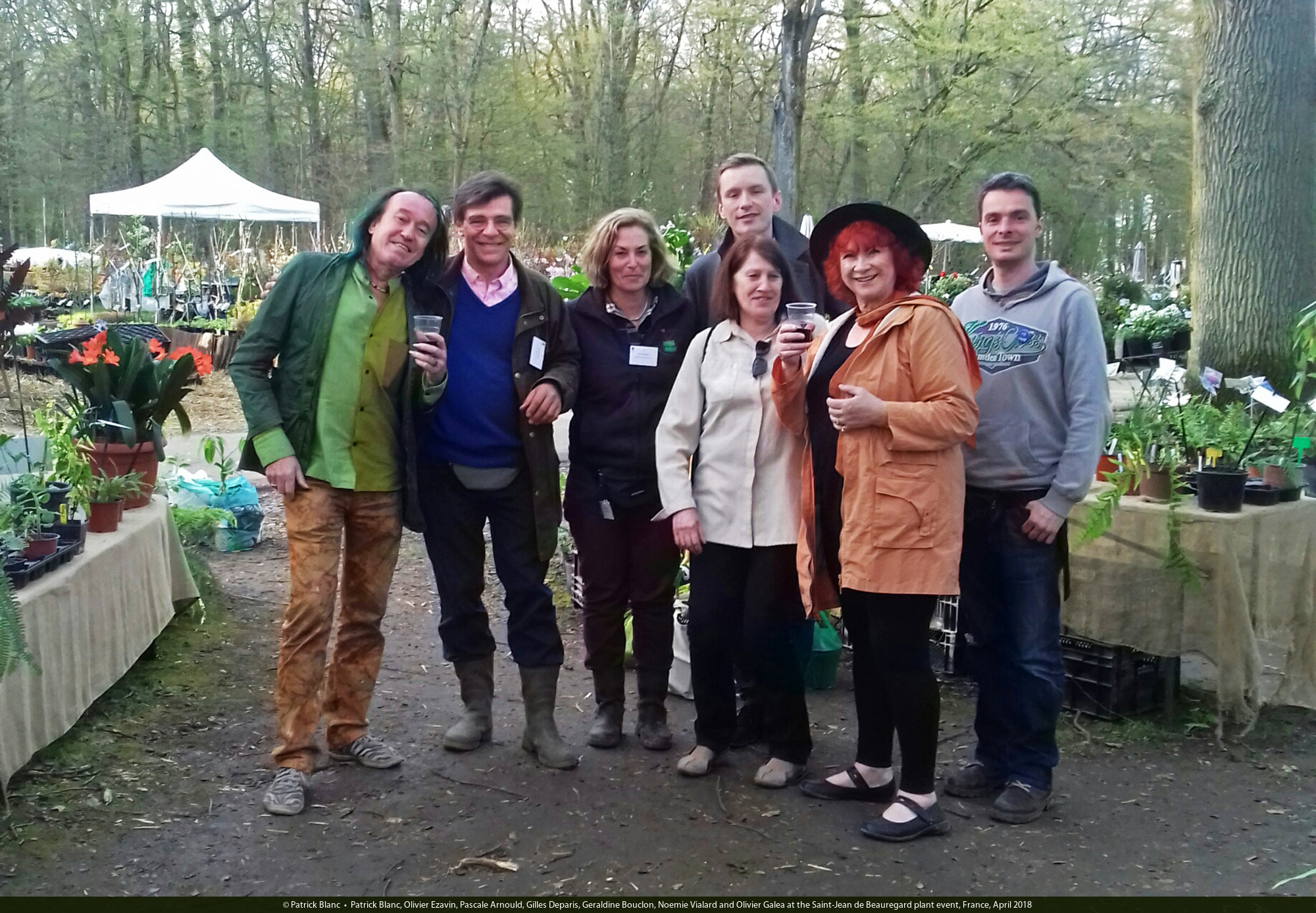 Patrick Blanc, Olivier Ezavin, Pascale Arnould, Gilles Deparis, Geraldine Bouclon, Noemie Vialard and Olivier Galea at the Saint-Jean de Beauregard plant event, France, April 2018