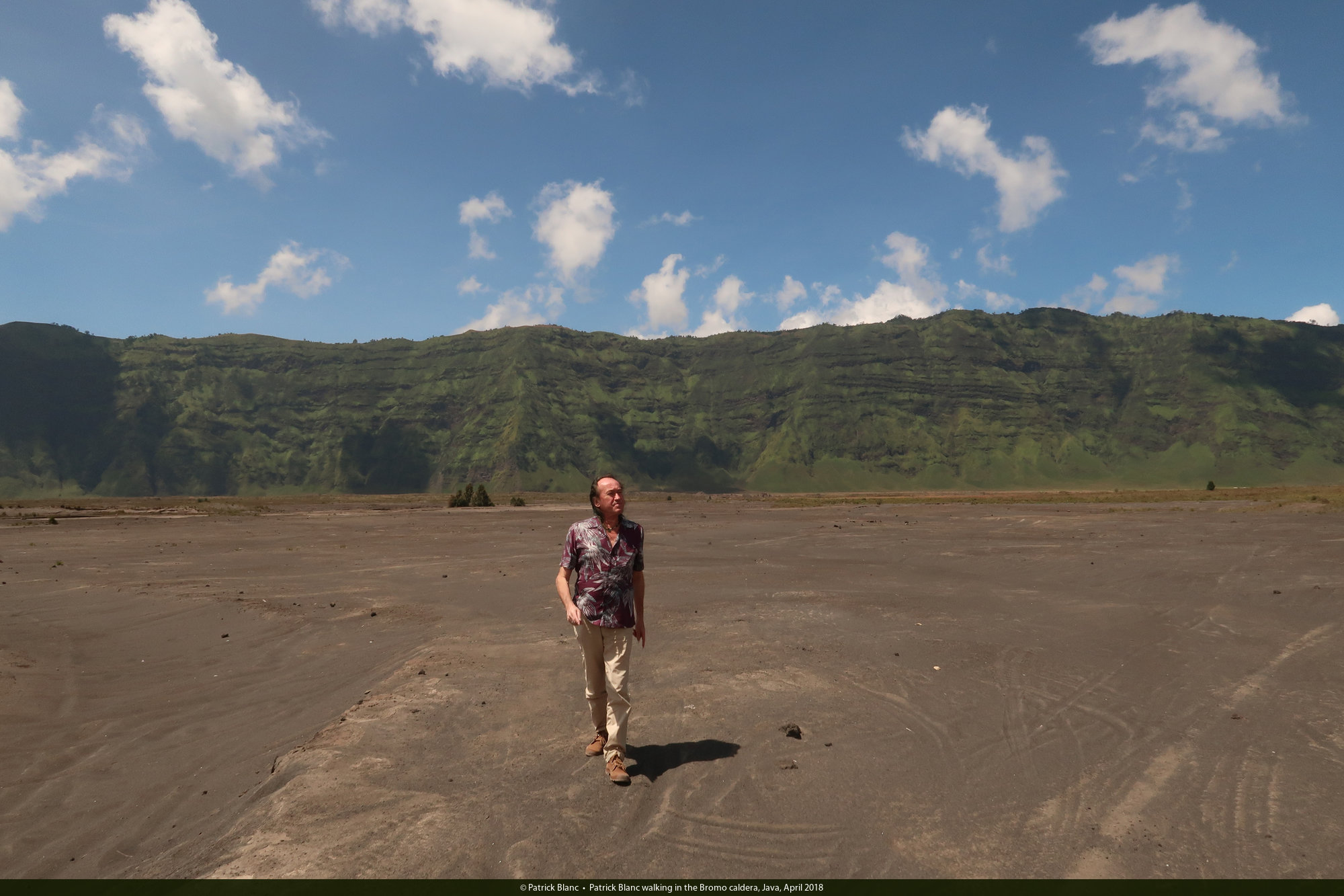 Patrick Blanc walking in the Bromo caldera, Java, April 2018