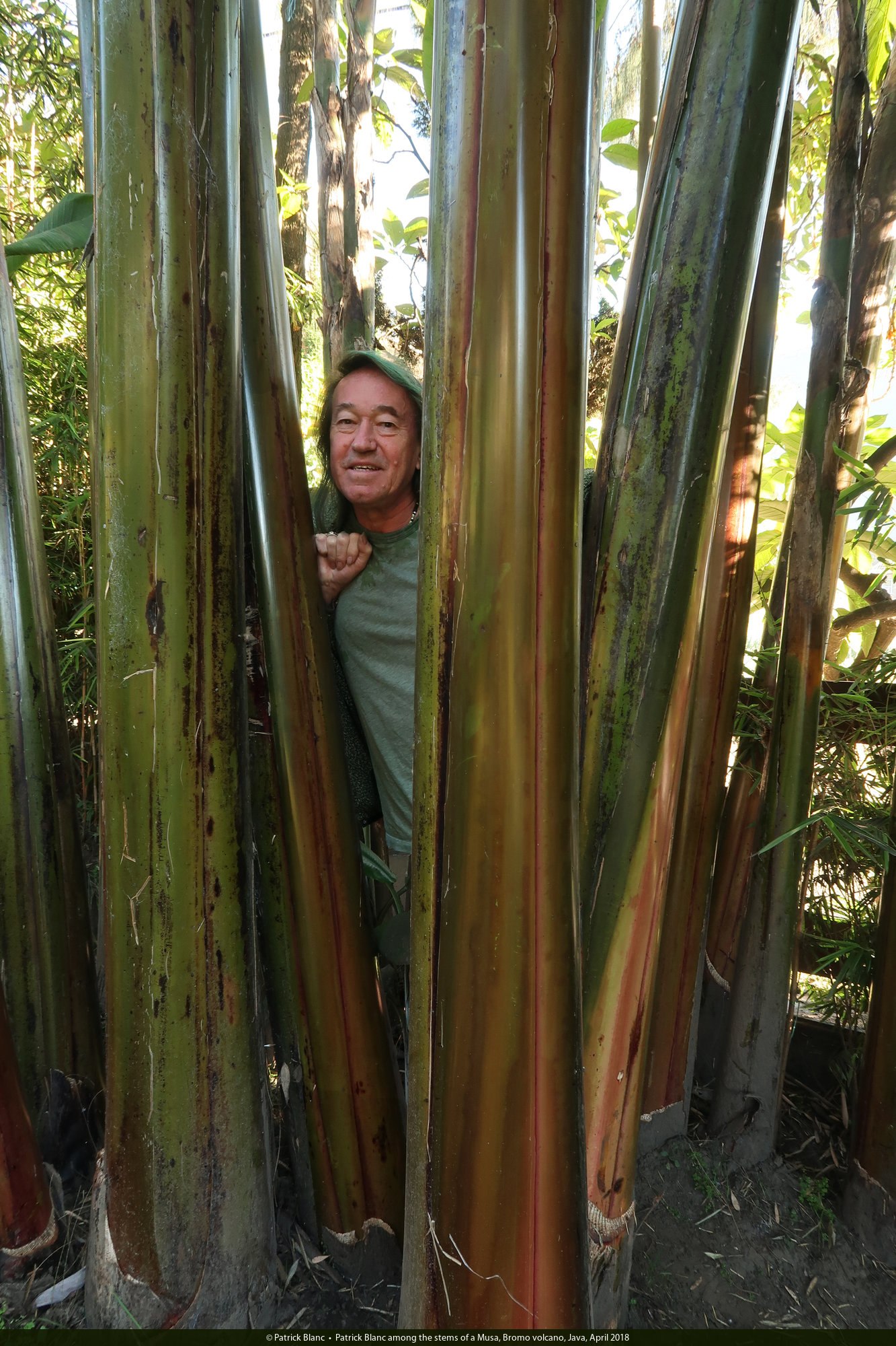 Patrick Blanc among the stems of a Musa, Bromo volcano, Java, April 2018