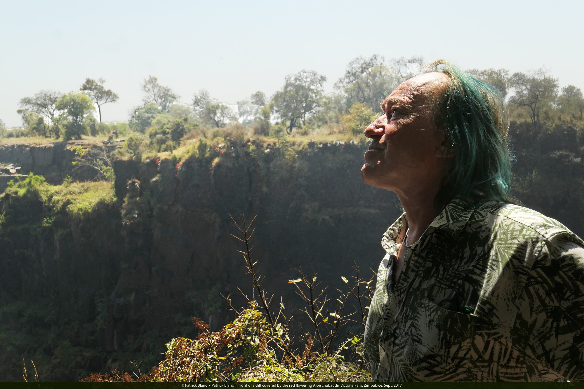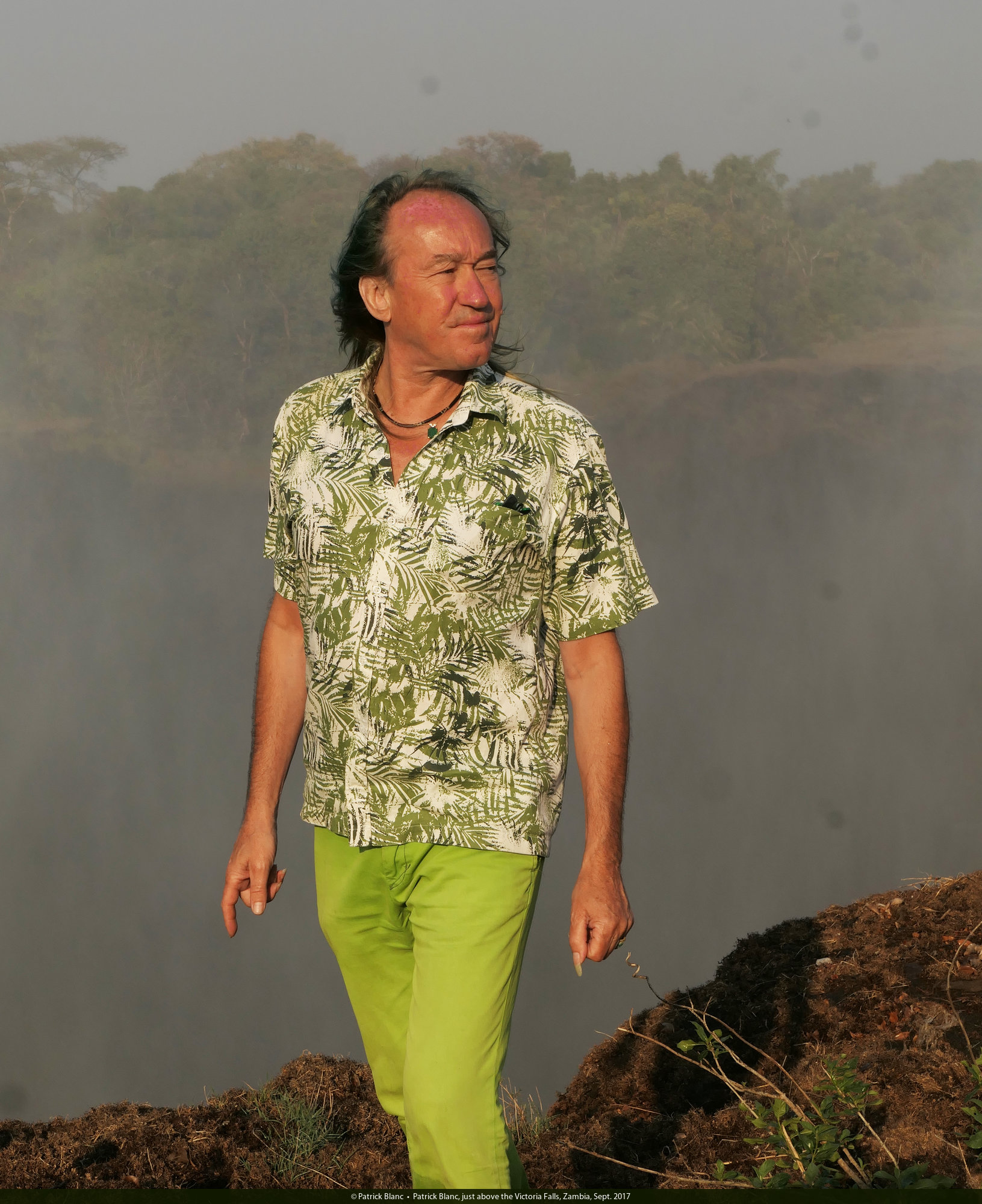 Patrick Blanc in front of the Victoria Falls, Zimbabwe, Sept. 2017