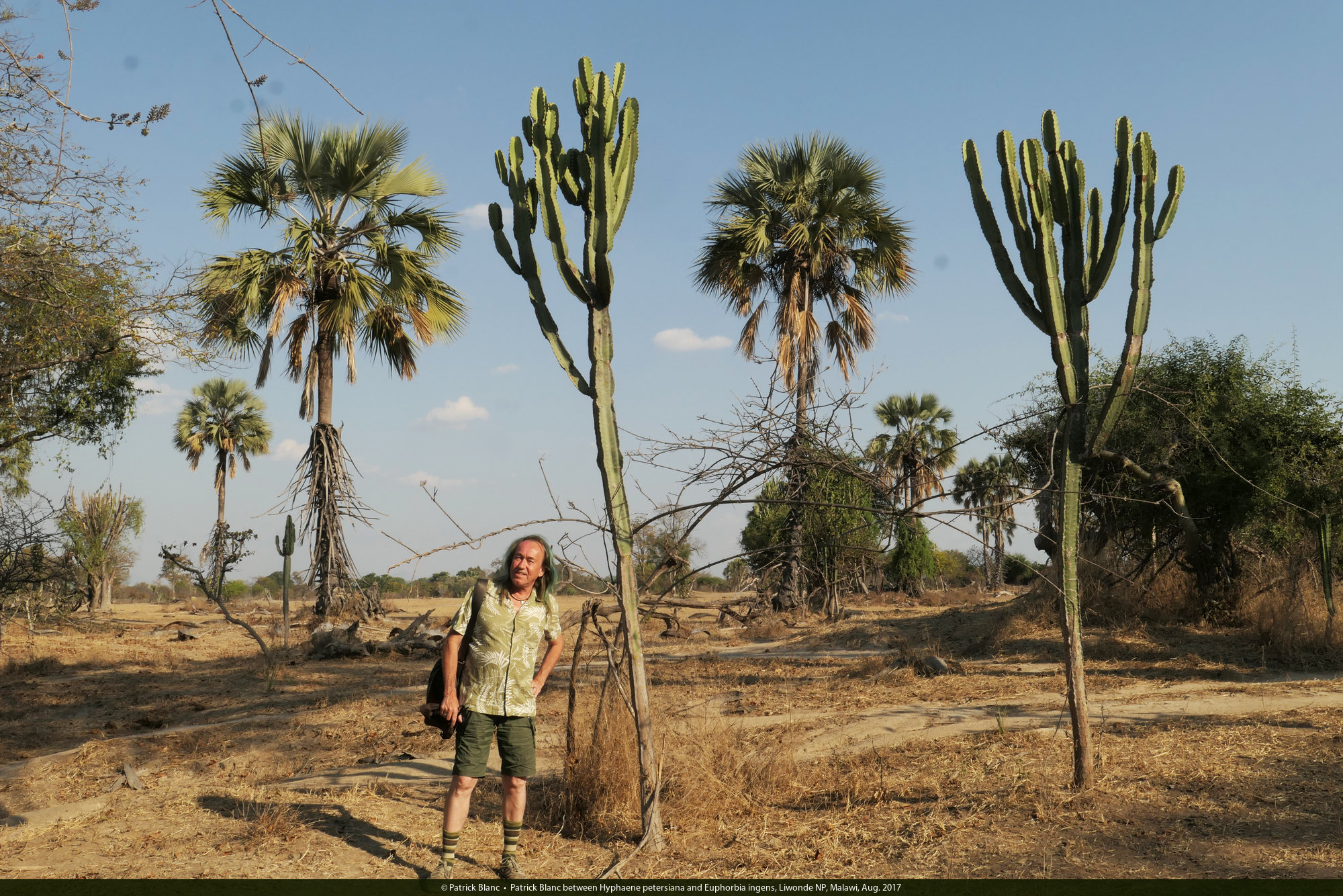 Patrick Blanc between Hyphaene petersiana and Euphorbia ingens, Liwonde NP, Malawi, Aug. 2017
