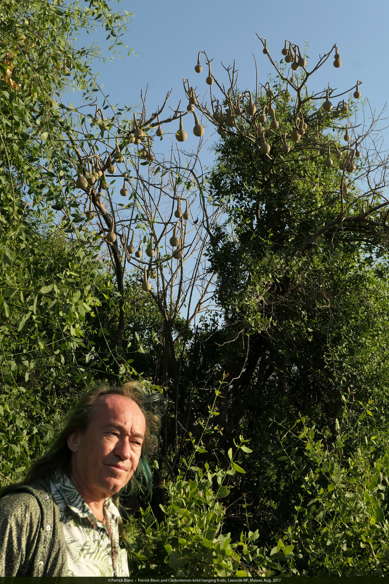 Patrick Blanc and Cladostemon kirkii hanging fruits, Liwonde NP, Malawi, Aug. 2017