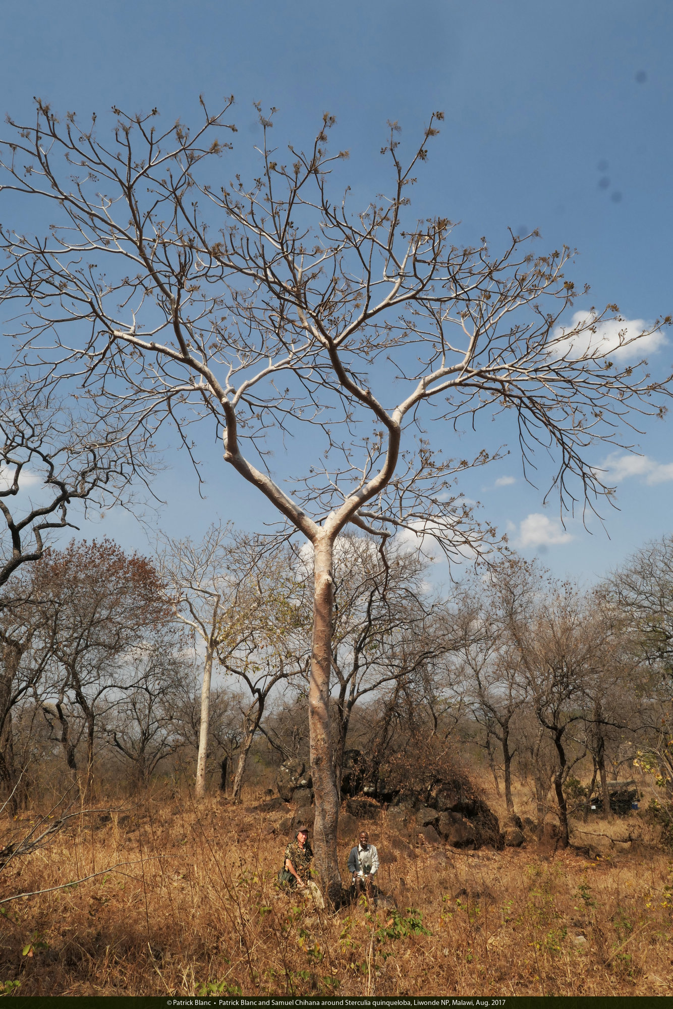 Patrick Blanc and Samuel Chihana around Sterculia quinqueloba, Liwonde NP, Malawi, Aug. 2017