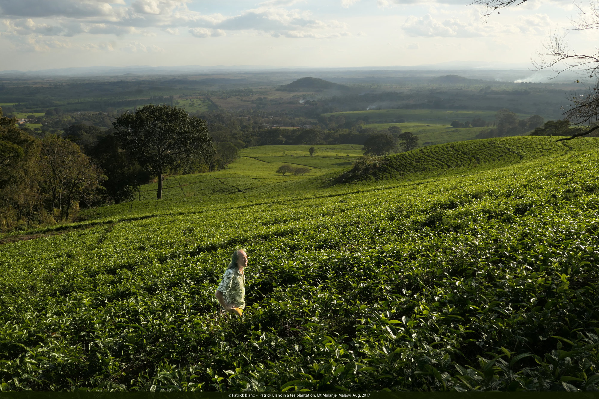 Patrick Blanc in a tea plantation, Mt Mulanje, Malawi, Aug. 2017