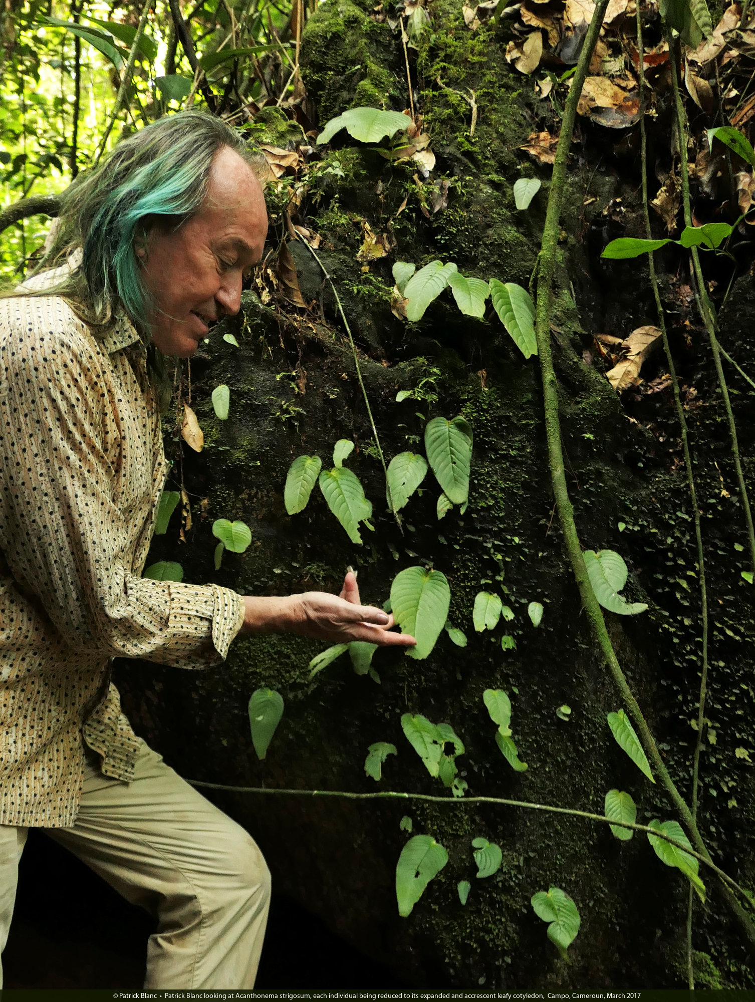 Patrick Blanc and Acanthonema strigosum, each individual with its expanded and accrescent leafy cotyledon, Campo, Cameroun, March 2017