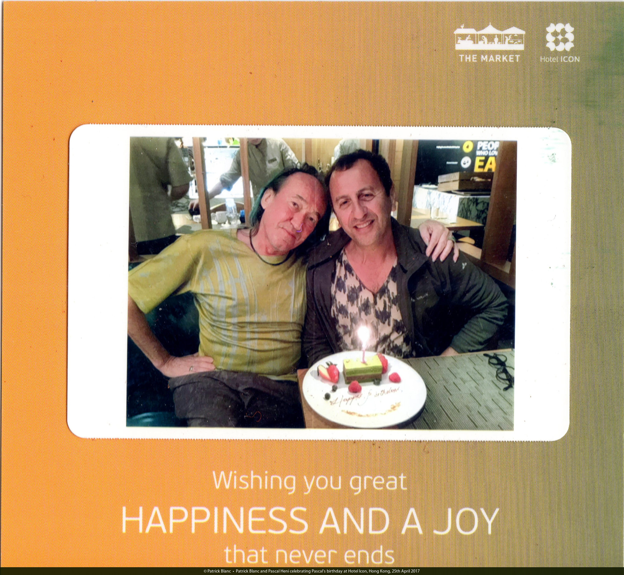 Patrick Blanc and Pascal Heni celebrating Pascal's birthday at Hotel Icon, Hong Kong, 25th April 2017