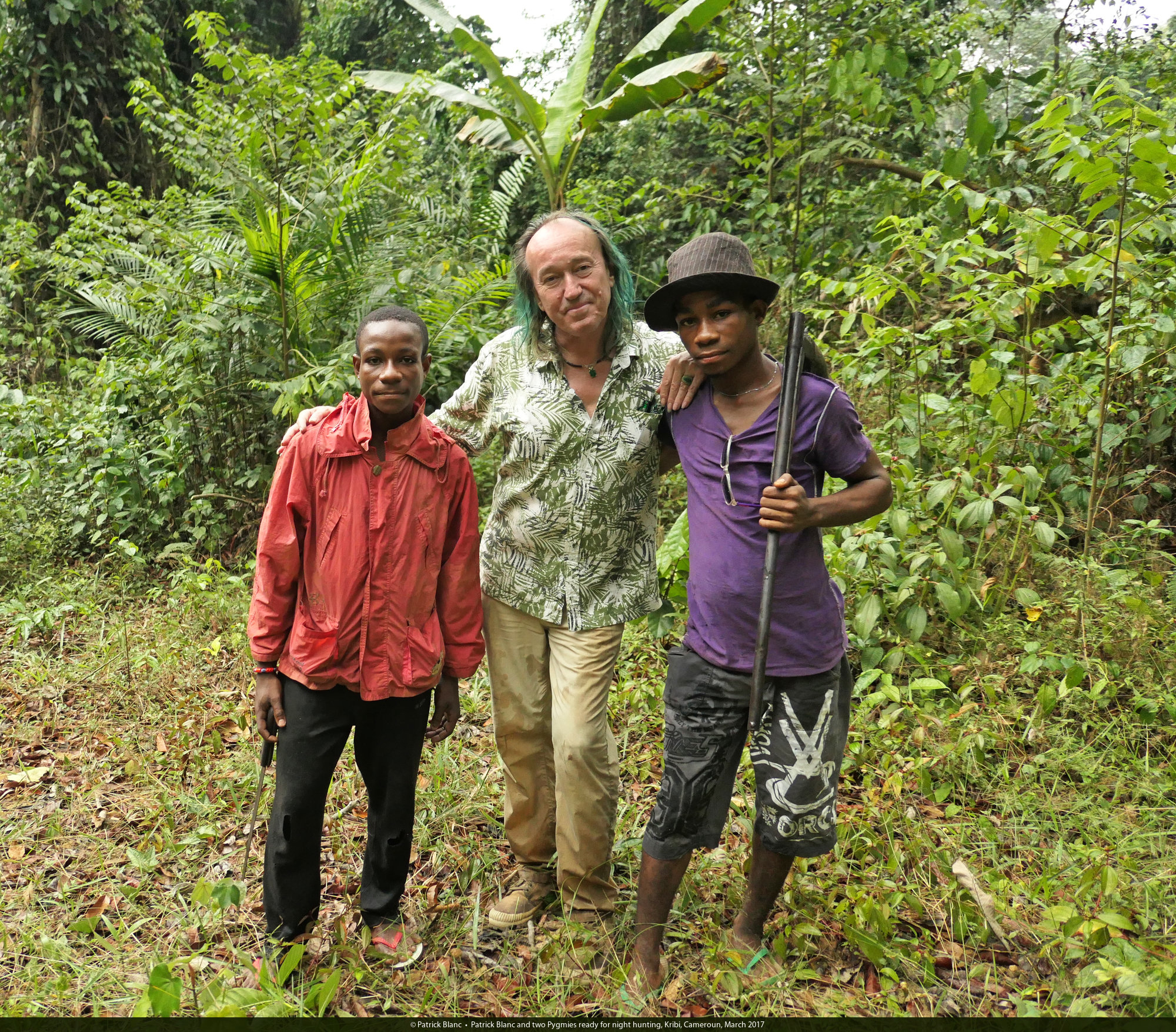 Patrick Blanc and a Pygmy family, Kribi, Cameroun, March 2017