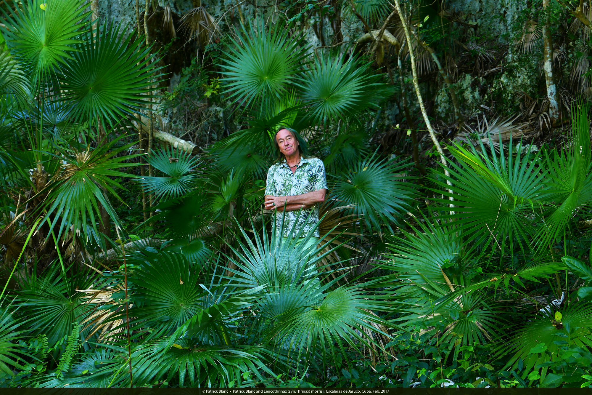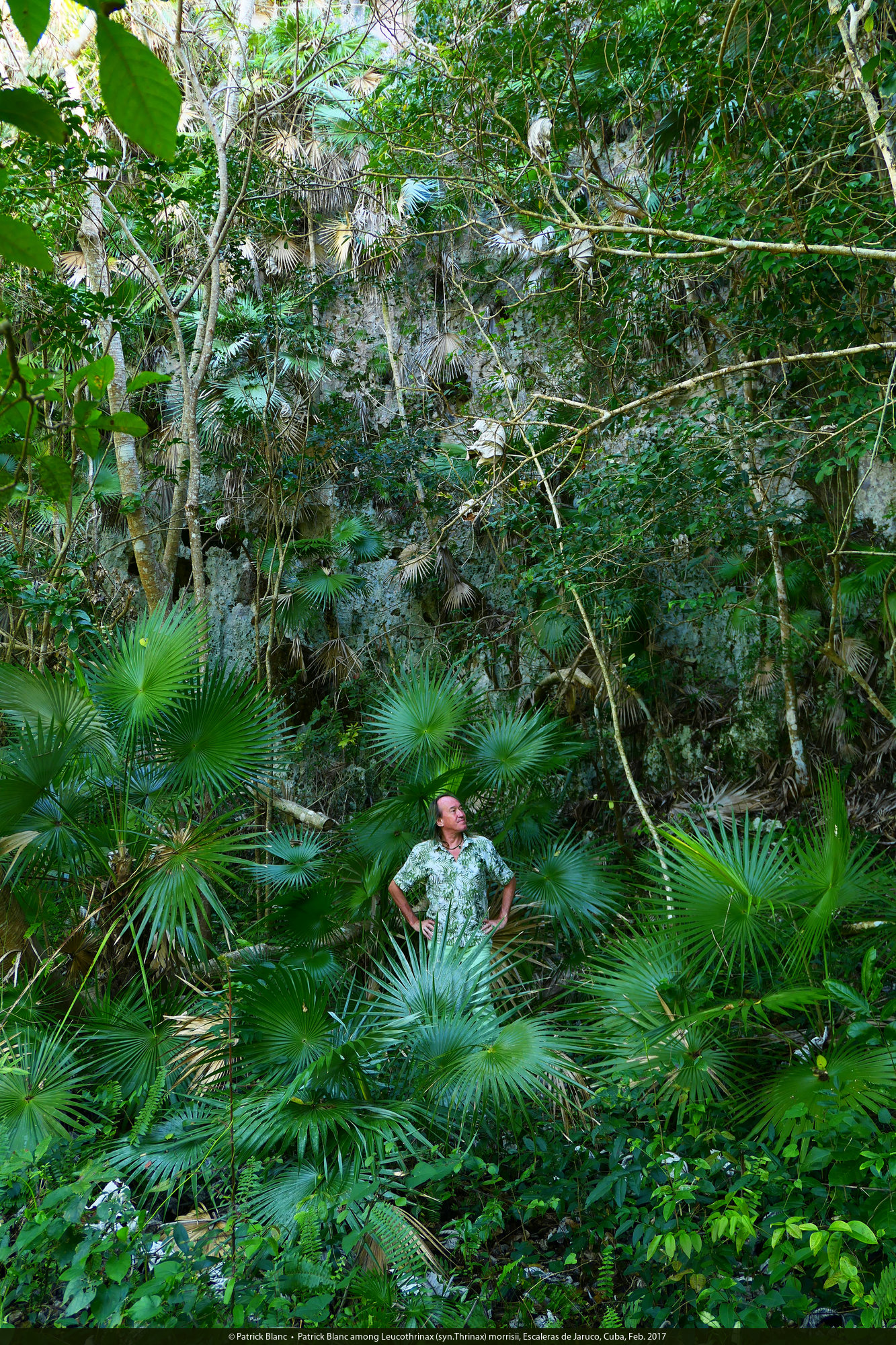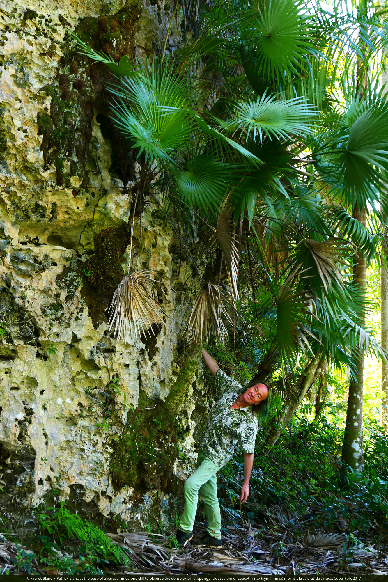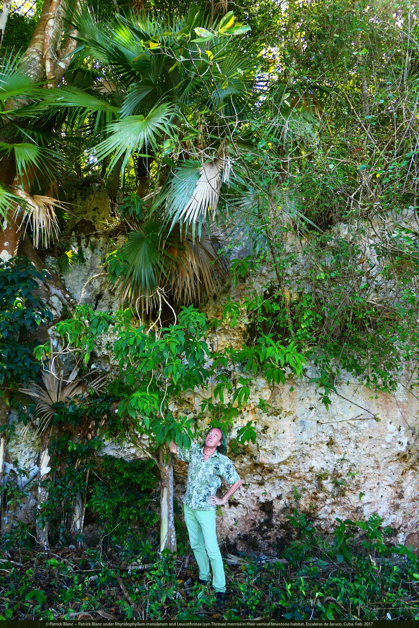 Patrick Blanc and Leucothrinax (syn.Thrinax) morrisii, Escaleras de Jaruco, Cuba, Feb. 2017