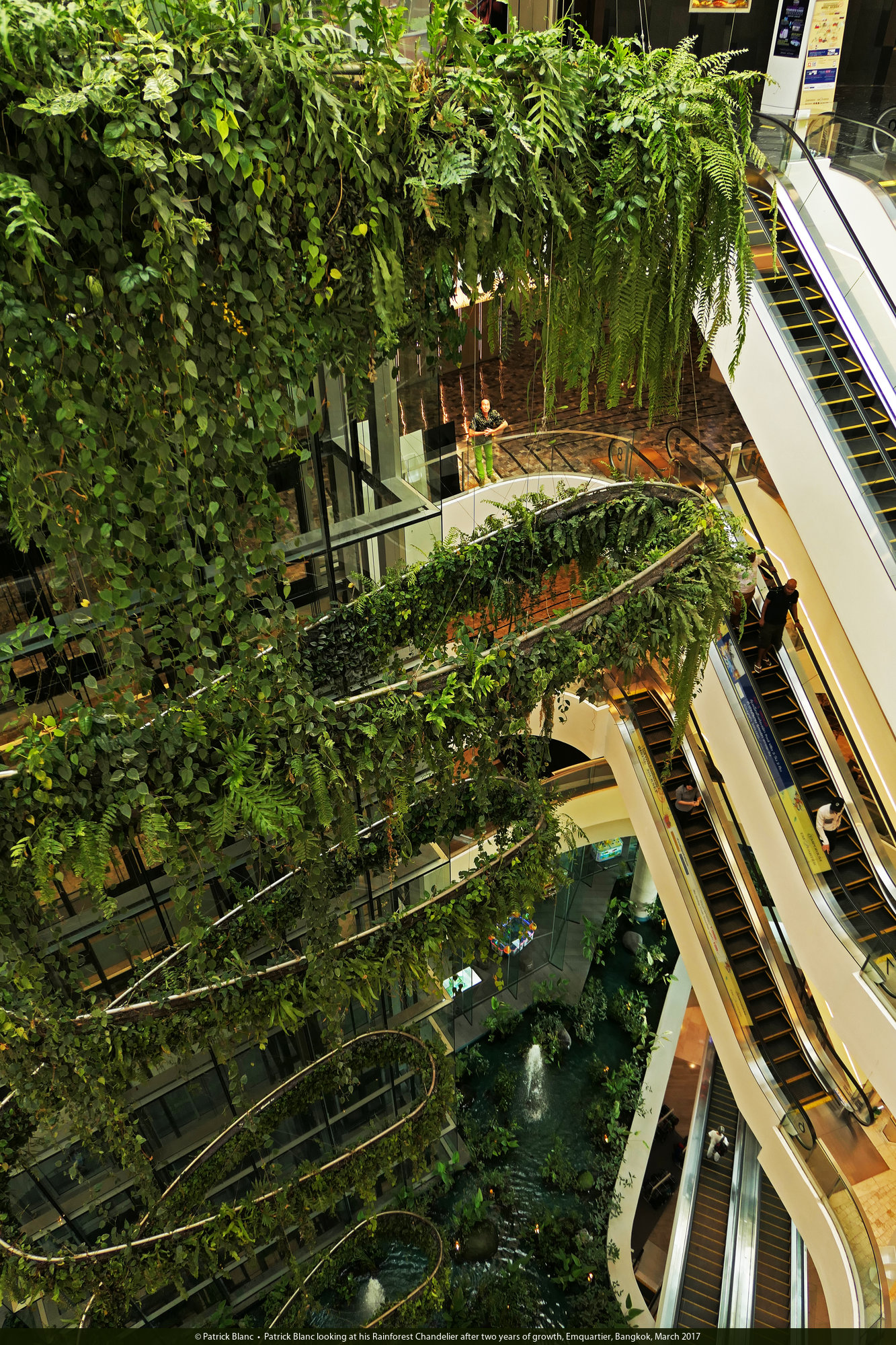 Patrick Blanc and his Rainforest Chandelier after two years of growth, Emquartier, Bangkok, March 2017