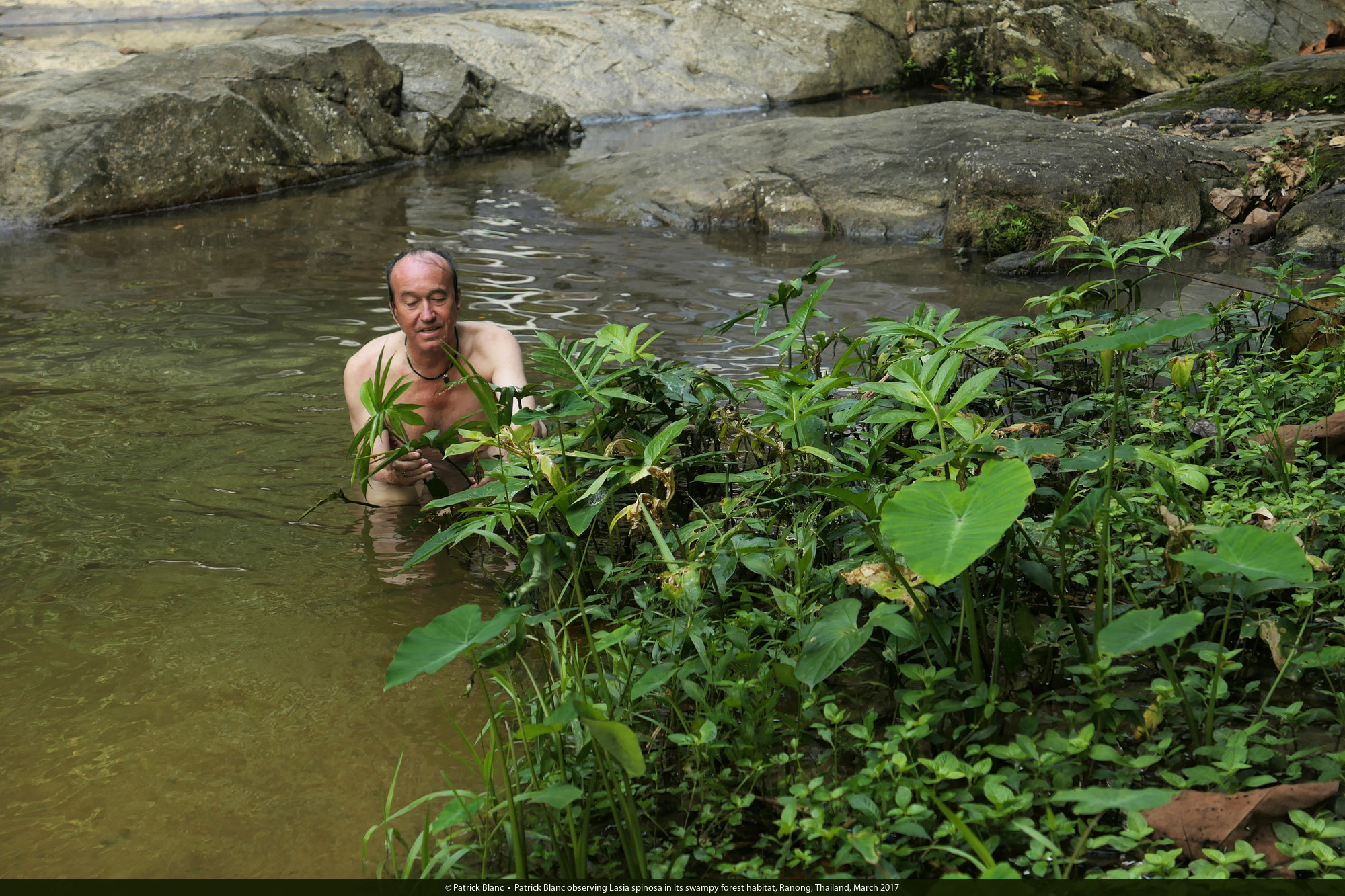 Patrick Blanc in the Cryptocoryne ciliata estuary habitat, Kra Isthmus, Thailand, March 2017
