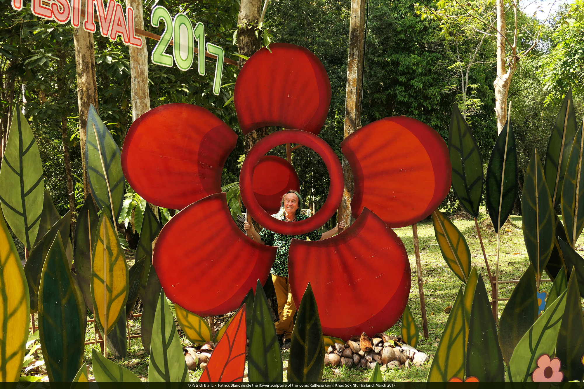 Patrick Blanc inside the flower sculpture of the iconic Rafflesia kerrii, Khao Sok NP, Thailand, March 2017