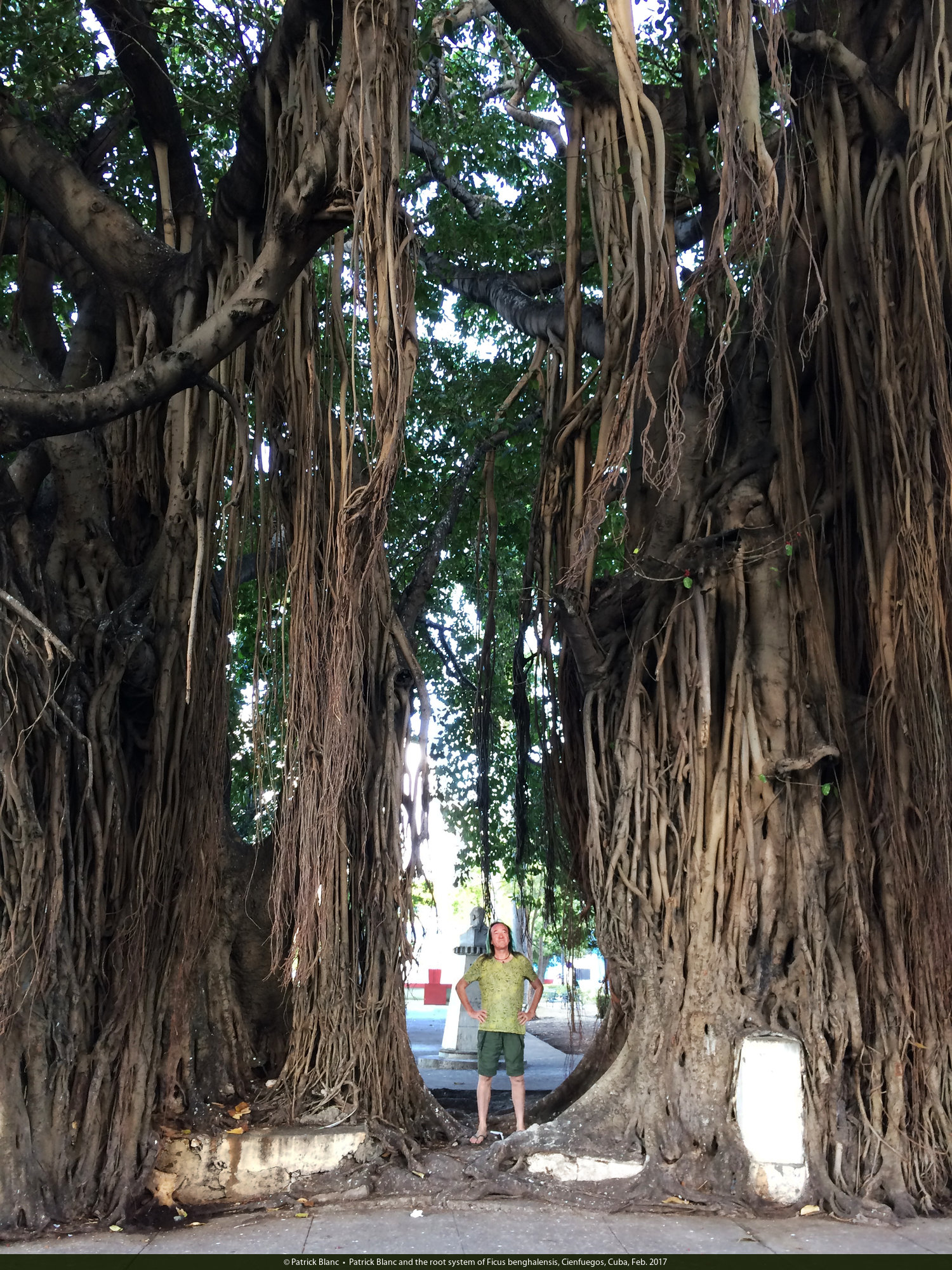 Patrick Blanc and the baobab of the plaza Jose Marti, Cienfuegos, Cuba, Feb. 2017
