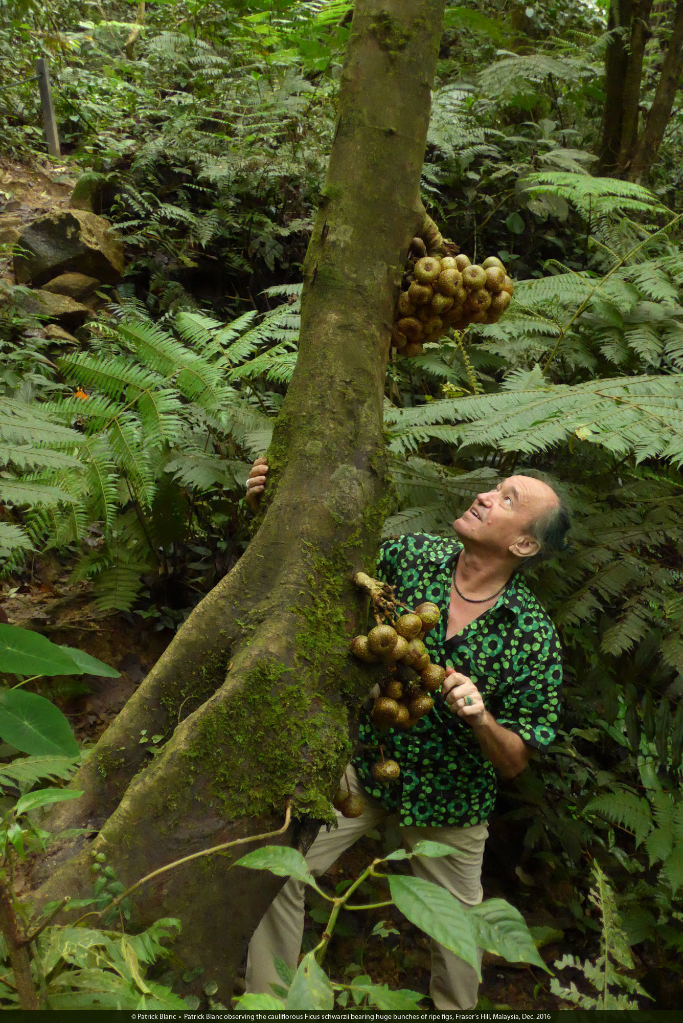Patrick Blanc observing the cauliflorous Ficus auriculata bearing huge bunches of ripe figs, Fraser's Hill, Malaysia, Dec. 2016