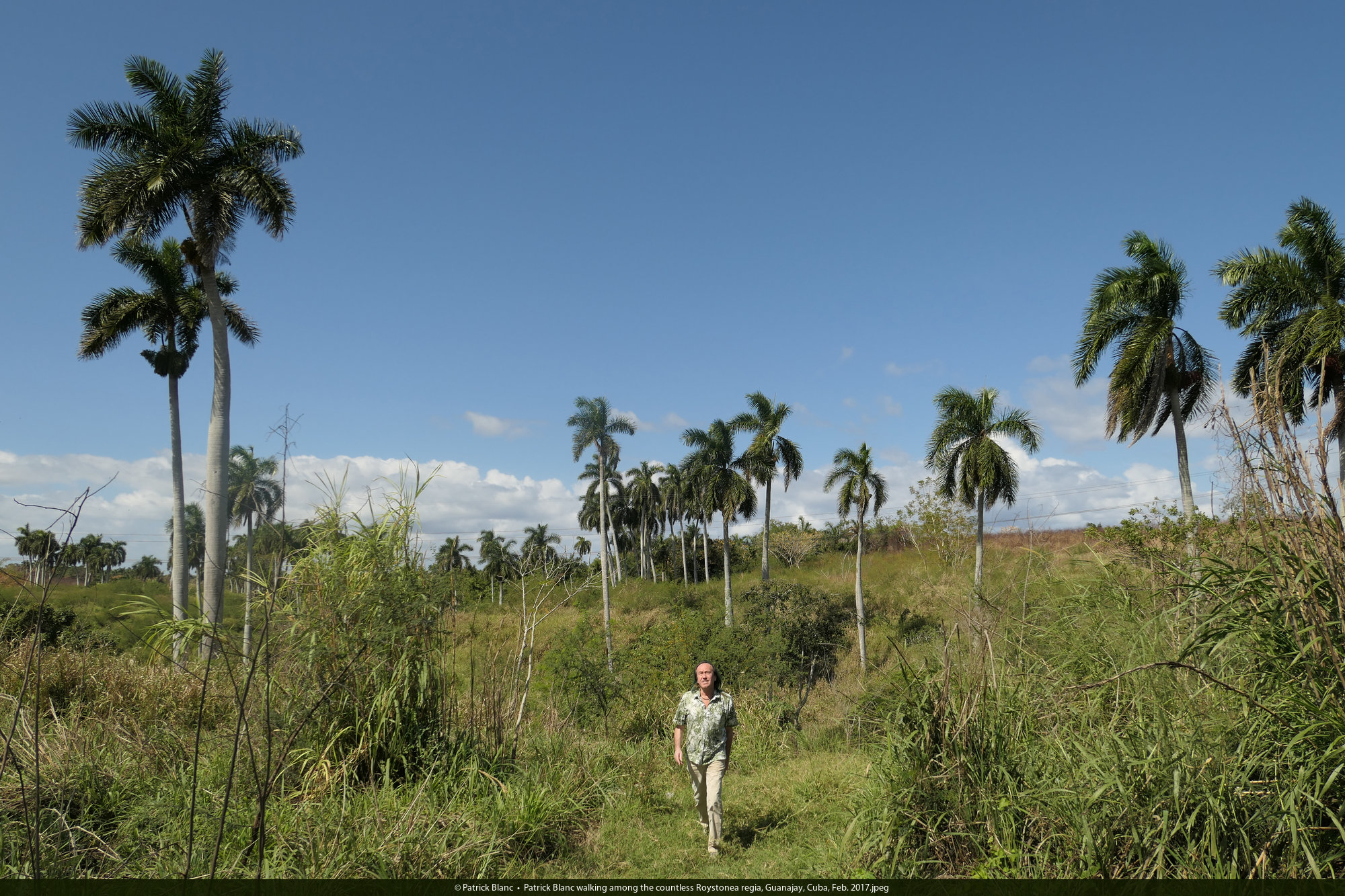 Patrick Blanc walking among the countless Roystonea regia, Guanajay, Cuba, Feb. 2017.jpeg