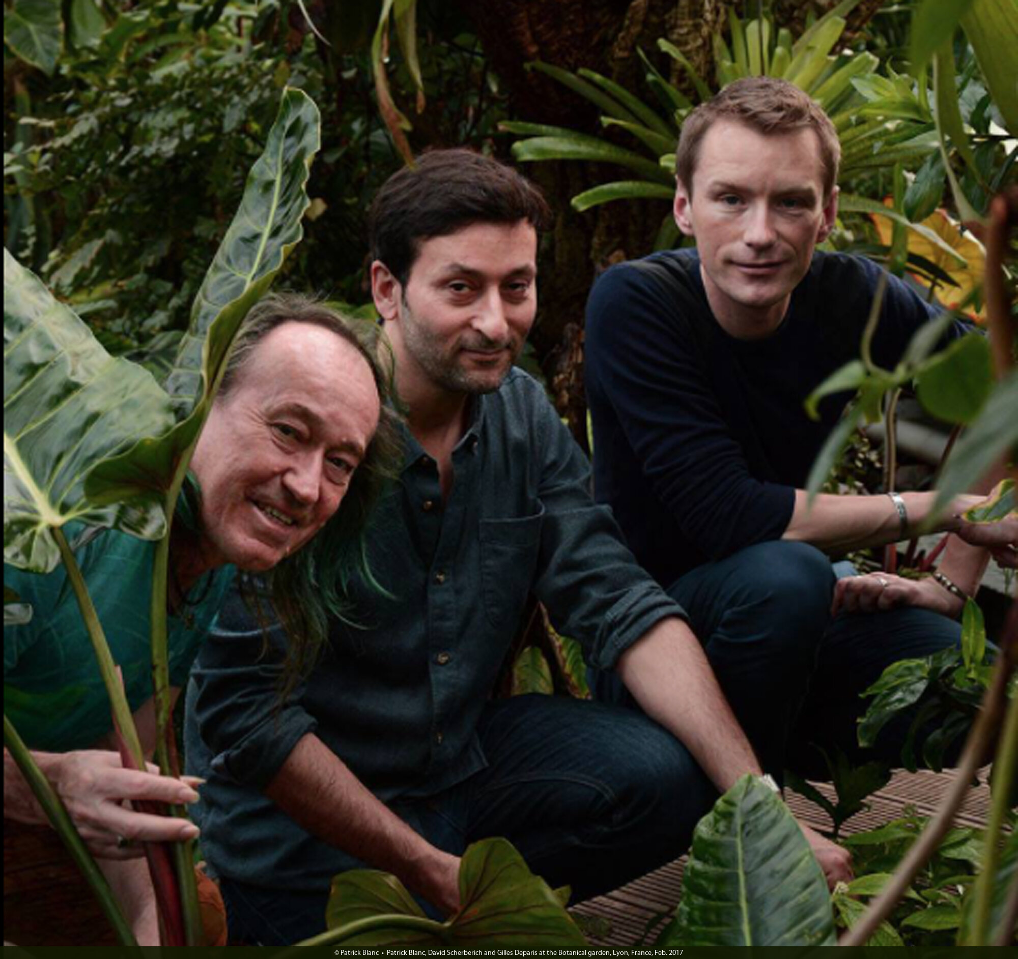 Patrick Blanc, David Scherberich and Gilles Deparis at the Botanical garden, Lyon, France, Feb. 2017
