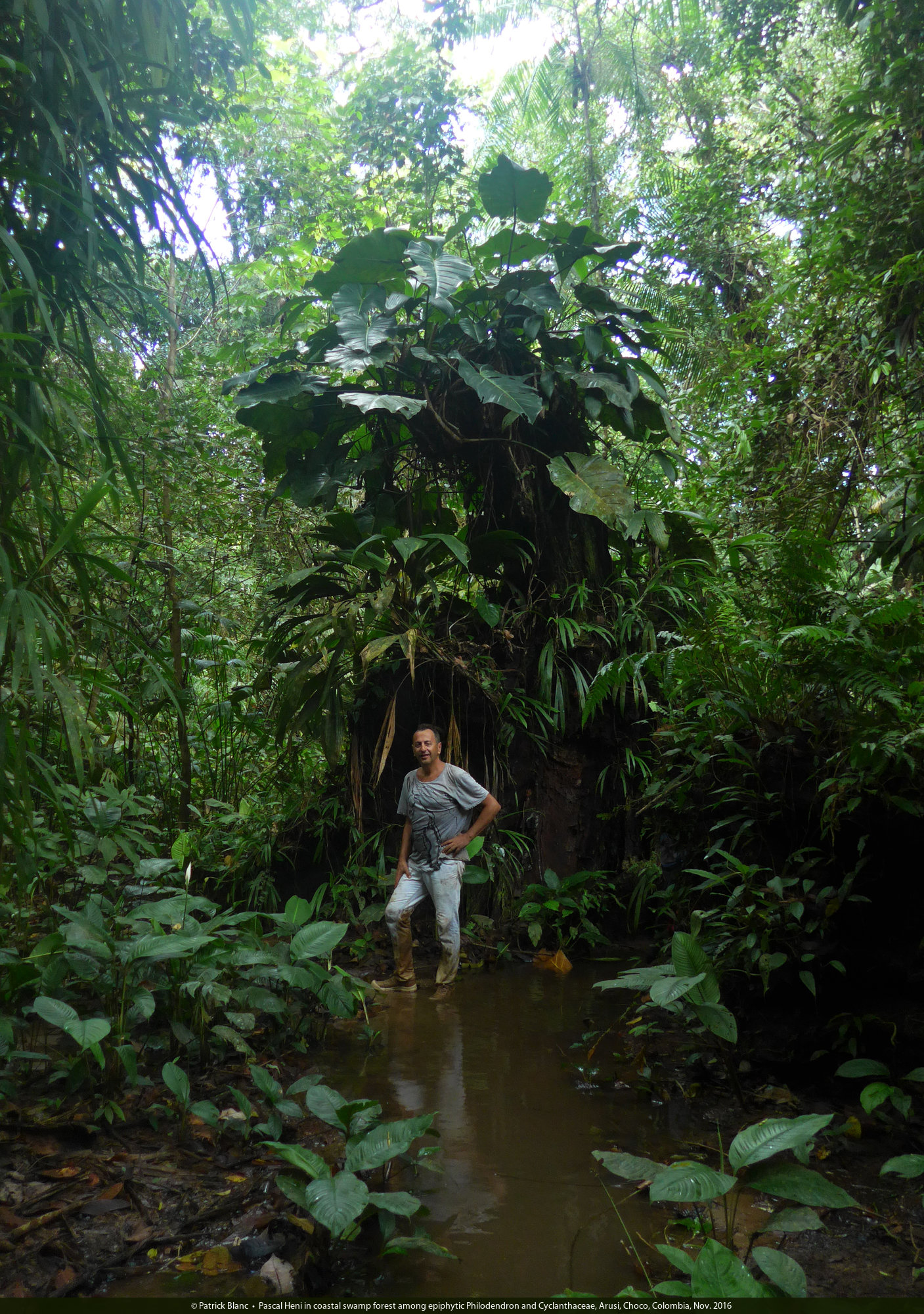 Patrick Blanc in coastal fresh swamp forest, Arusi, Nuqui, Choco, Colombia, Nov. 2016
