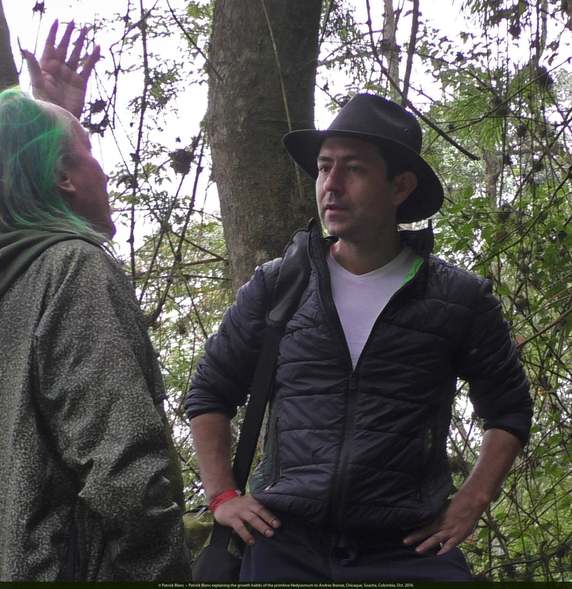 Patrick Blanc explaining the growth habits of the primitive Hedyosmum to Andres Ibanez, Chicaque, Soacha, Colombia, Oct. 2016