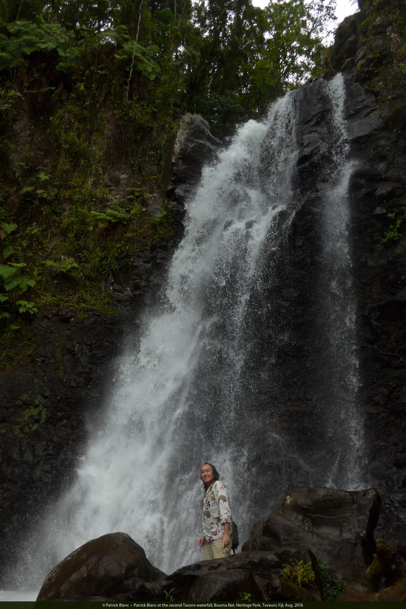 Patrick Blanc at the second Tavoro waterfall, Bouma Nat. Heritage Park, Taveuni, Fiji, Aug. 2016