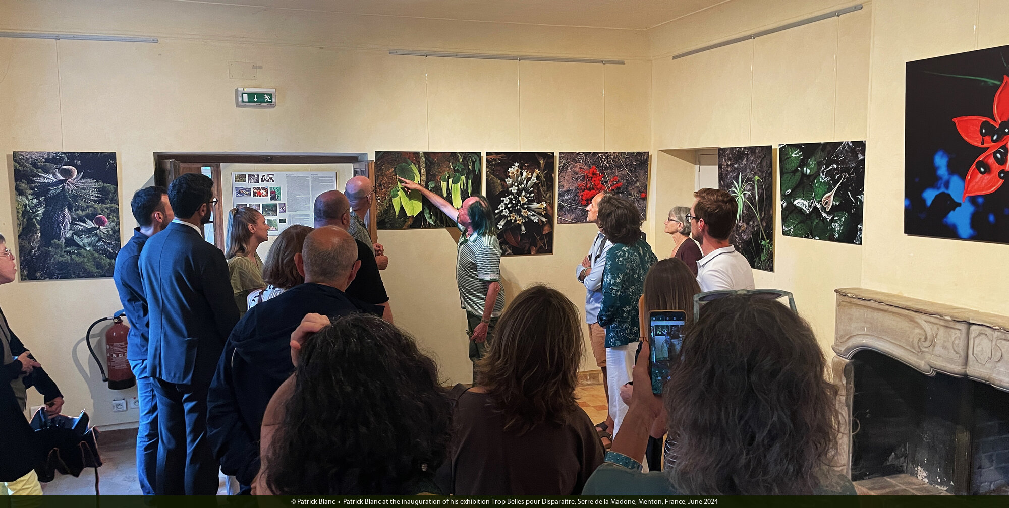 Patrick Blanc at the inauguration of his exhibition Trop Belles pour Disparaitre, Serre de la Madone, Menton, France, June 2024