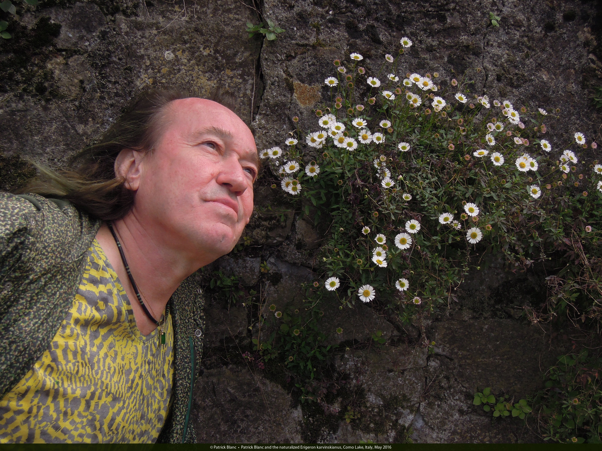 Patrick Blanc and the naturalized Erigeron karvinskianus, Como Lake, Italy, May 2016