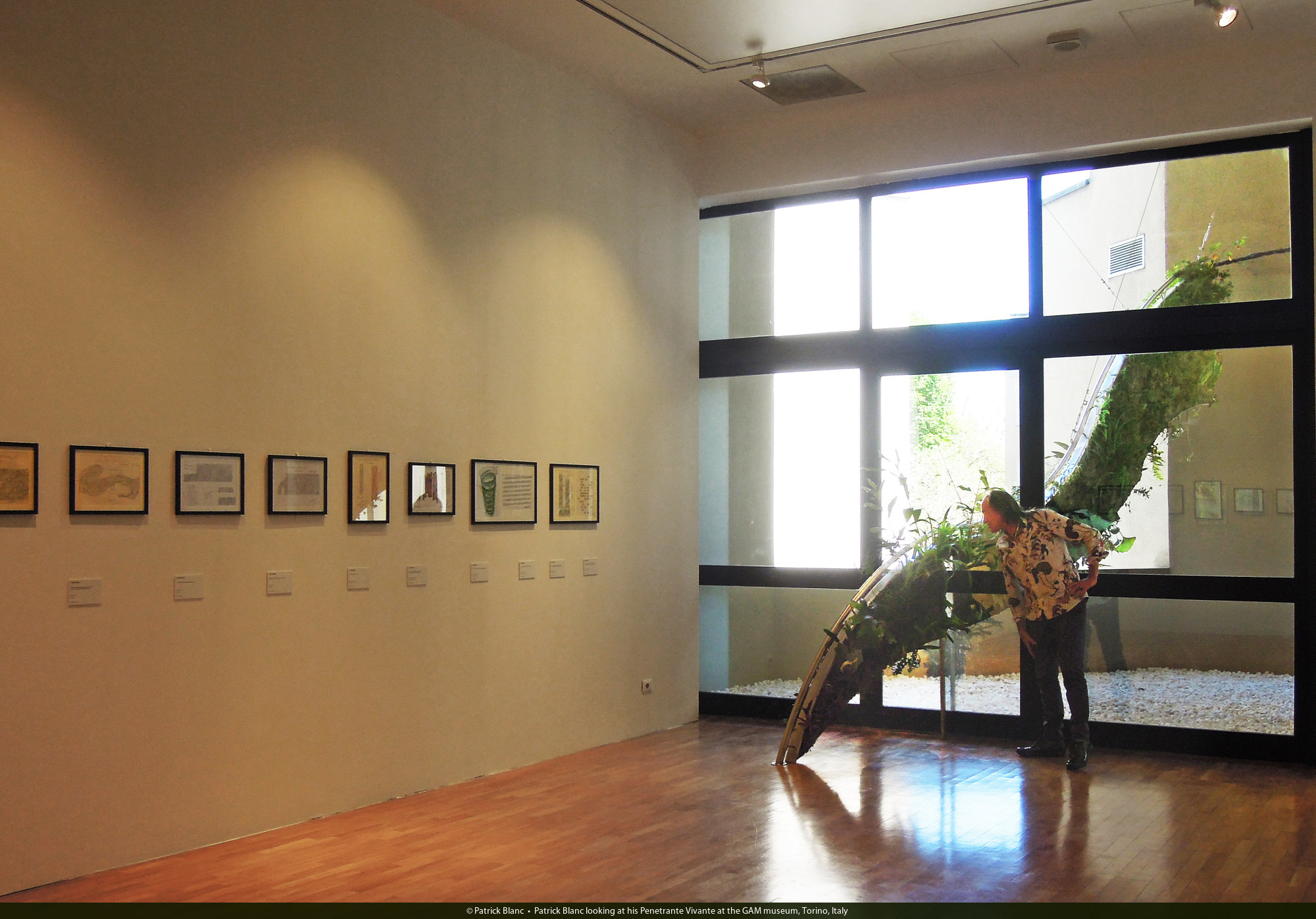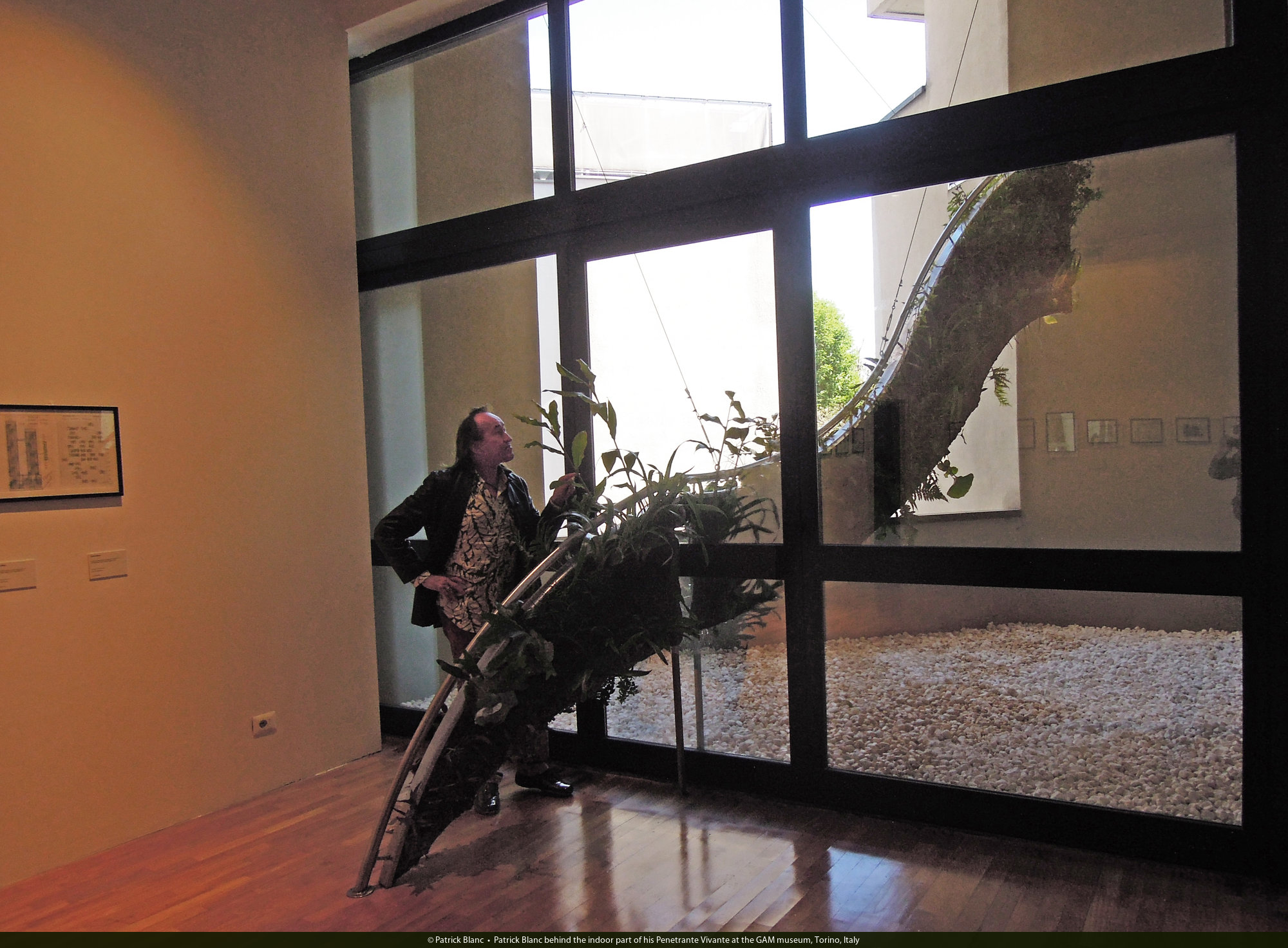 Patrick Blanc looking at his Penetrante Vivante at the GAM museum, Torino, Italy